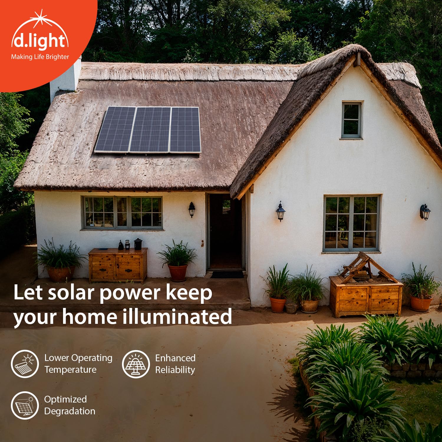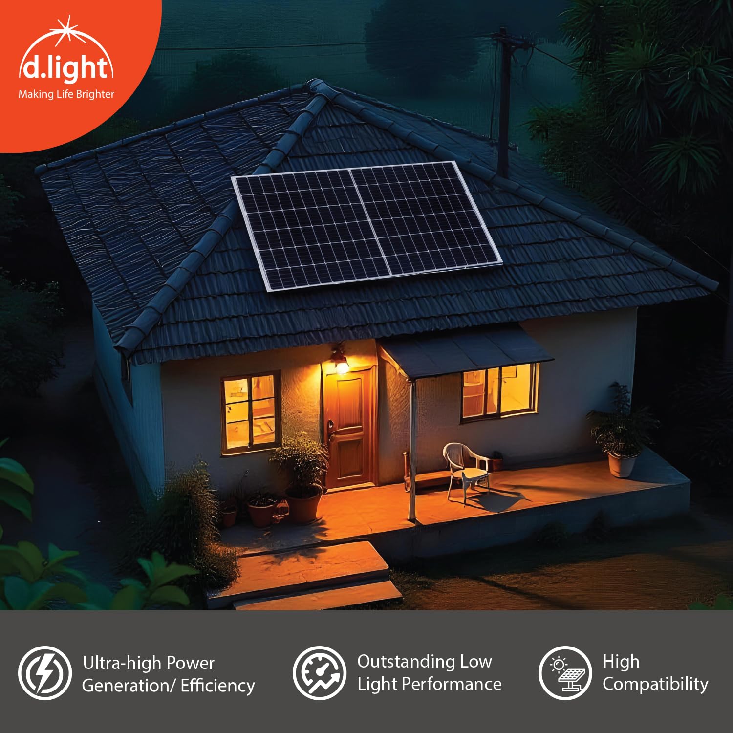 d.light 110W 12V Monocrystalline Solar Panel | Durable & High Efficiency | Ideal for Home & Off-Grid Use with 25 Years Warranty (Pack of 1)