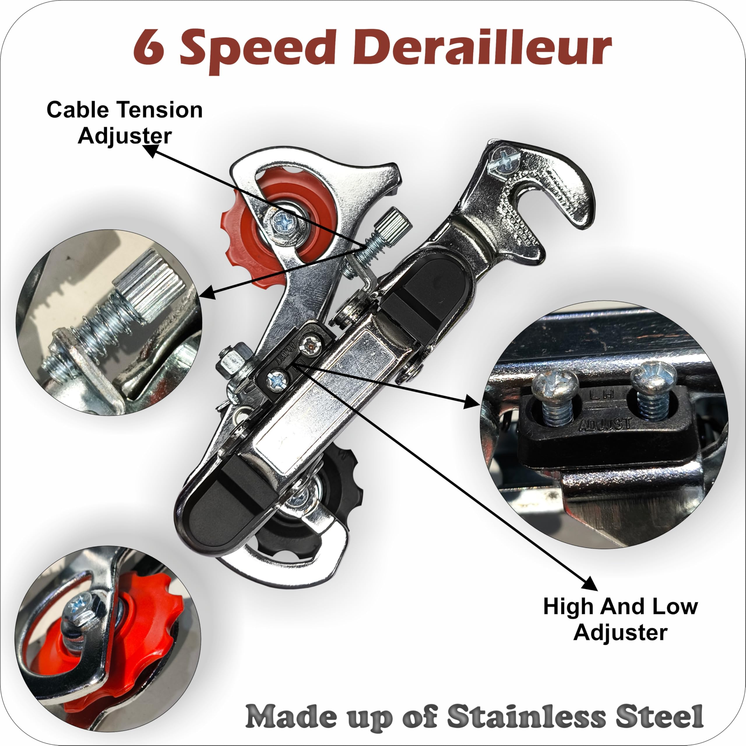 Brand: De VentaColor: BlackFeatures: Complete 6-Speed Gear Set – Includes 6-speed derailleur, freewheel (14-24T), outer wire, grip, and grip shifter... Read more