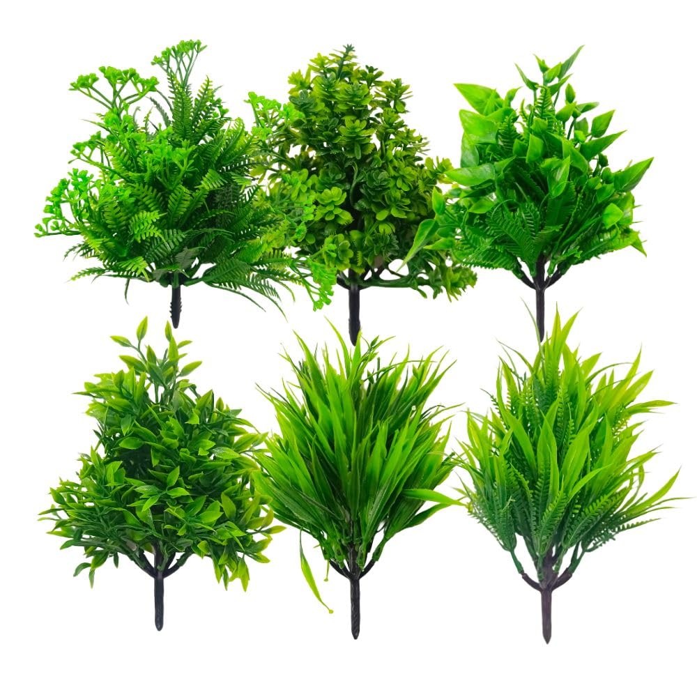 Dekorly Artificial Plastic Mix Green Grass Fake Outdoors Plant Bushes Decor Faux Greenery Shrubs For Outdoor And Indoor, Artificial Shrubs Stems | Height- 7 Inches (Multi-6)