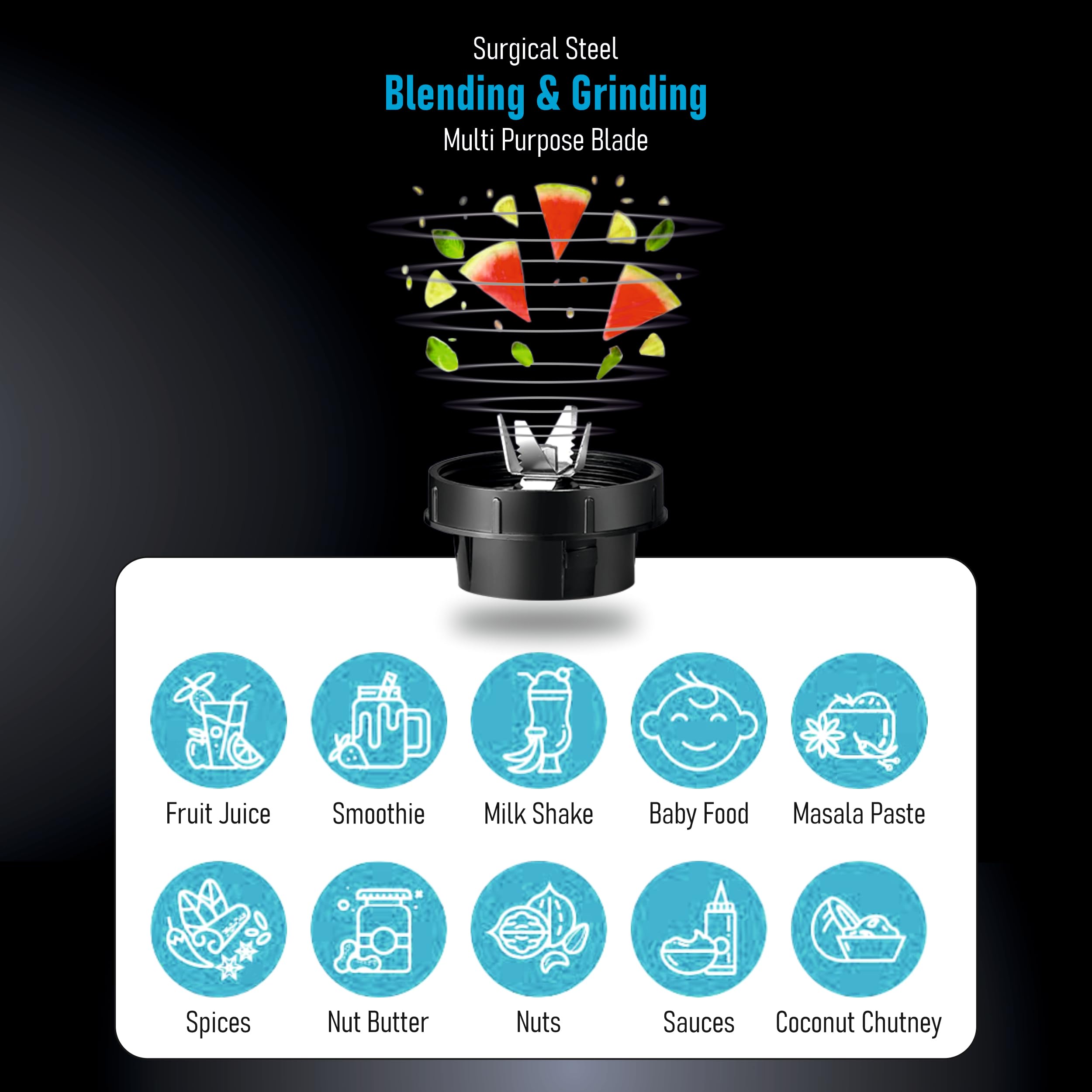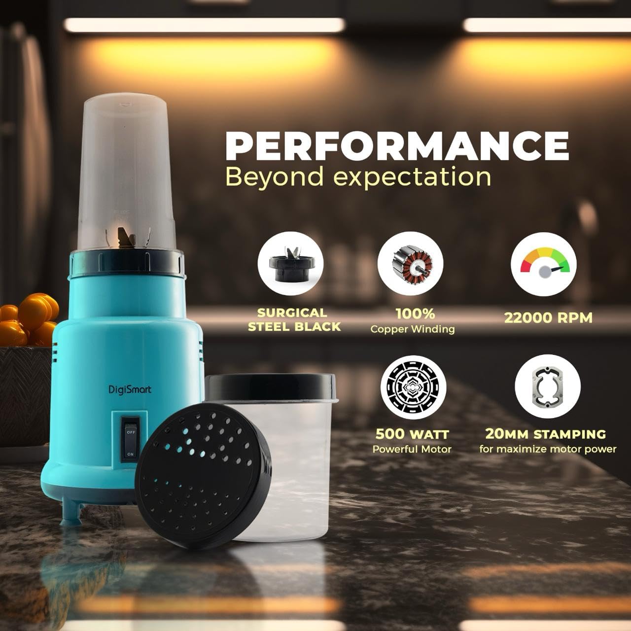 DIGISMART Nutri Mixer Grinder With 2 Jar | 500 Watt | Long Lasting Shock Proof Abs Body | Heavy Duty Motor Multi Purpose Blade Come With 1 Years Warranty (Blue)