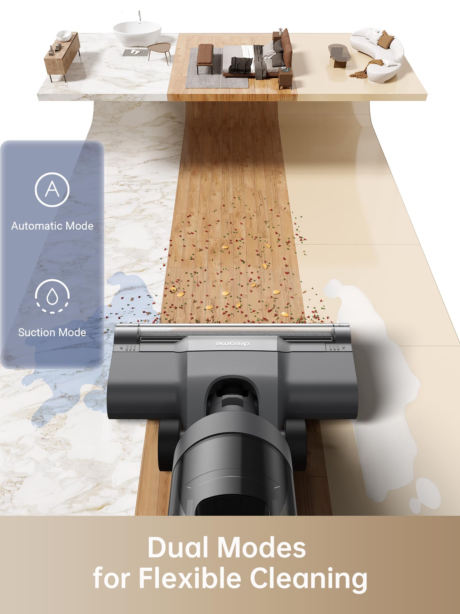 DREAME H12 Core Water & Dust Vacuum Cleaner, Lightweight, Smart, Cordless Vacuum Cleaner for Hard Floors, Intelligent Dirt Detection, Self-Cleaning, Wood, Vinyl and Other Hard Floors