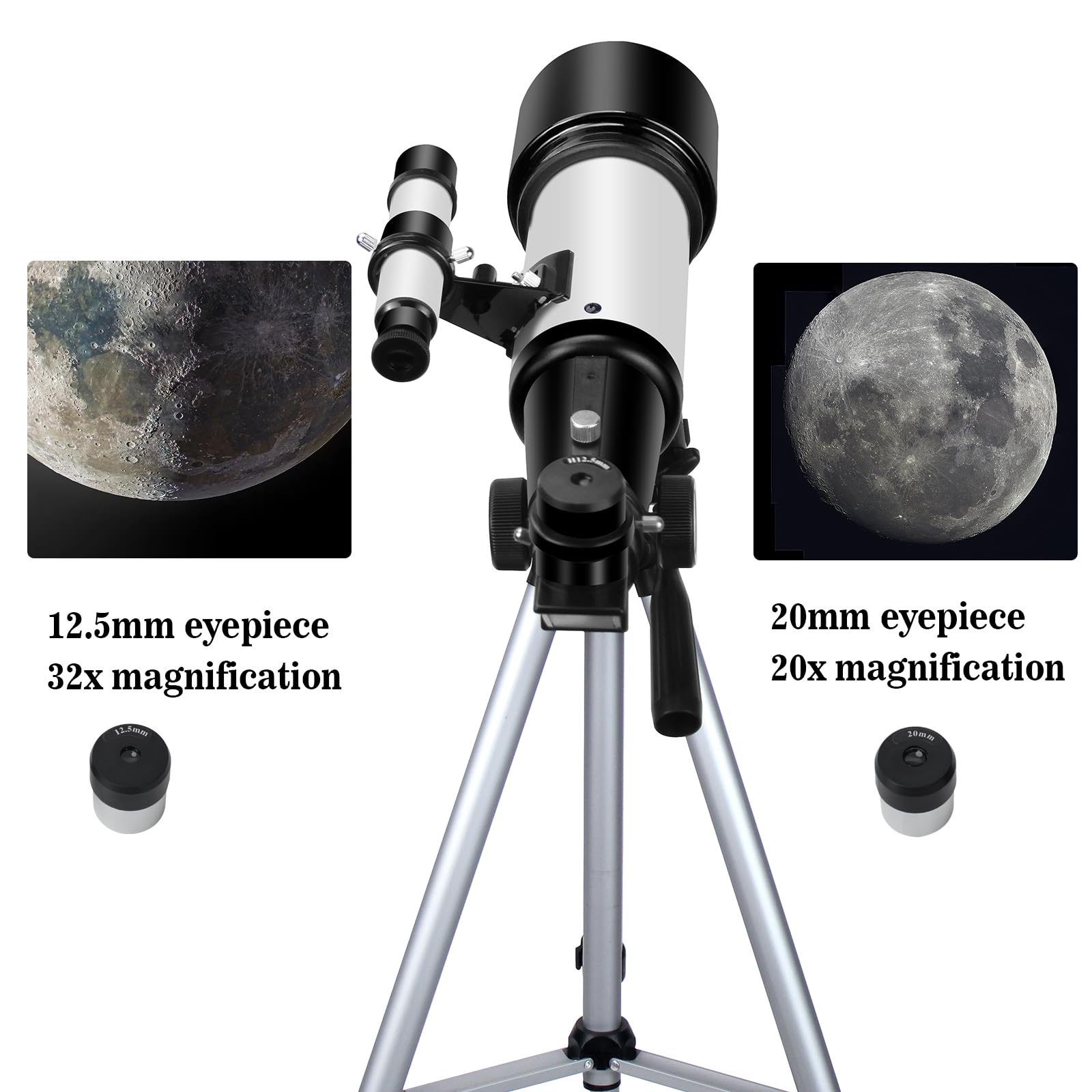 EACONN Telescopes, Telescope for Kids and Adults Beginners, 70mm Aperture 400mm Focus Length Refractor Travel Telescope with AZ Mount for Observe The Moon and Landscape