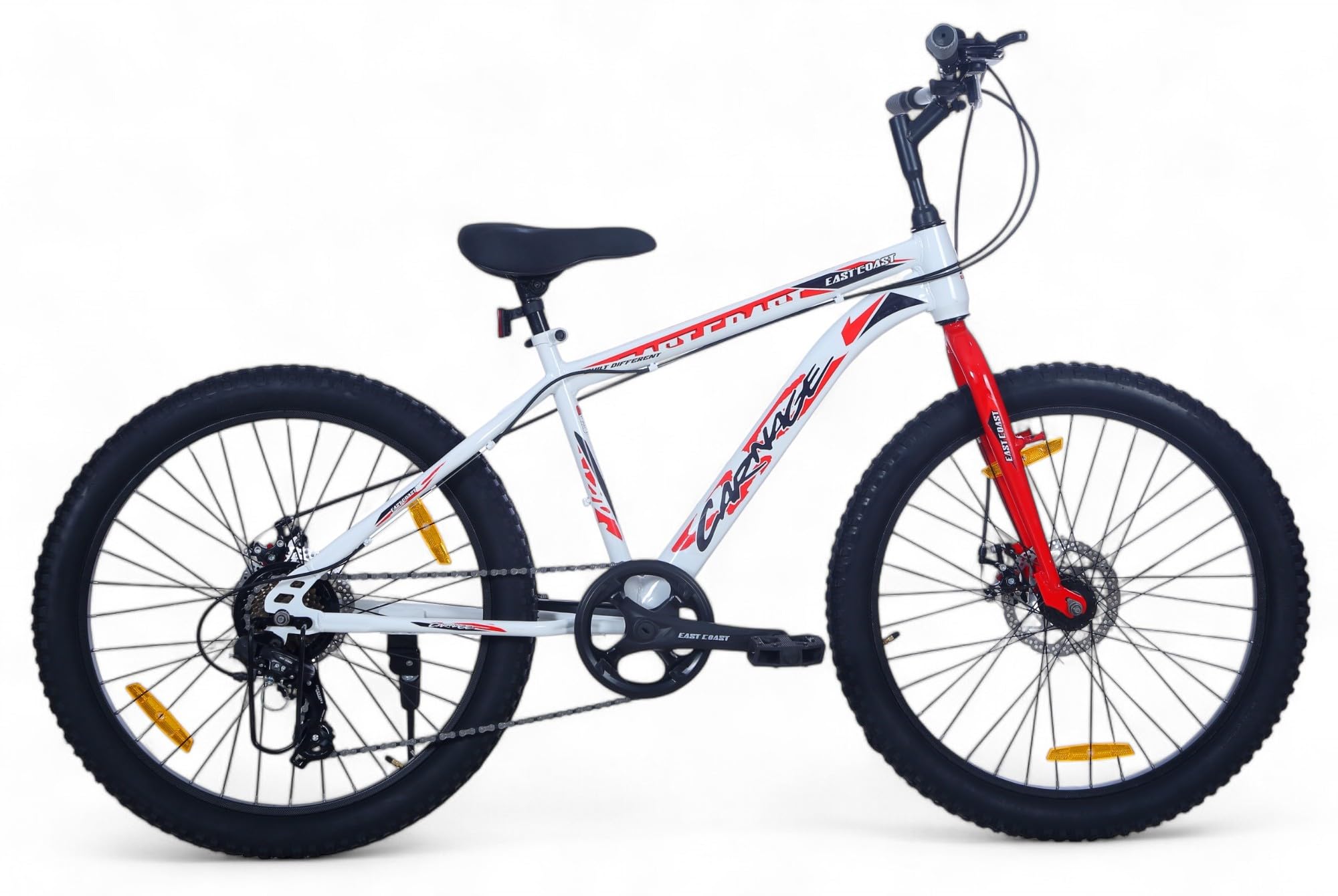 EAST COAST Carnage 24T Cycle with 7 Speed Gear (9years to 13 Years Big Kids) Rigid, 16 Inches, White