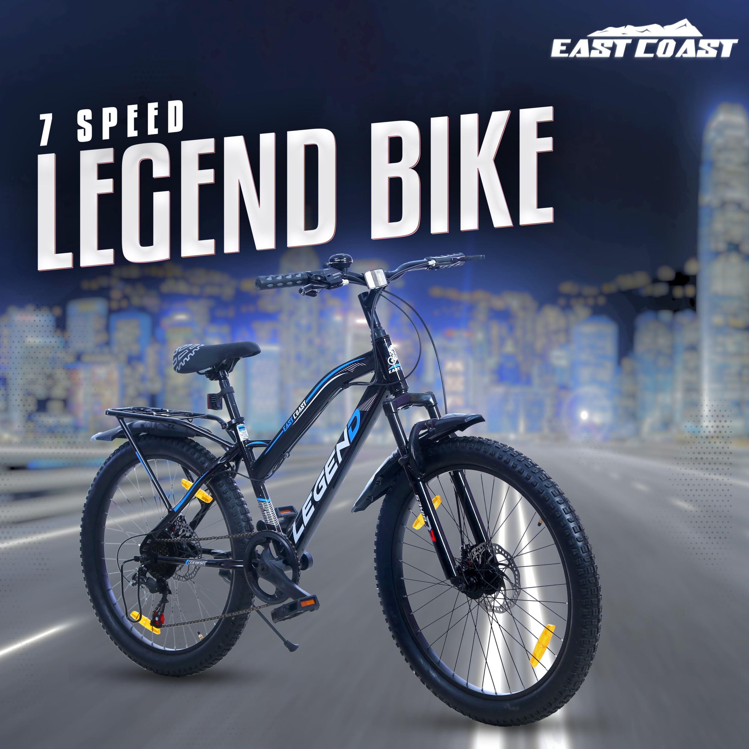 EAST COAST Legend 7 Speed Cycle/Bicycle for Kids Boys & Girls | 24T Mountain Bike/Mountain Cycle Without Carrier, 17 Inch Frame, Disc Brake Ideal for 9-15 Years (Black) - Front