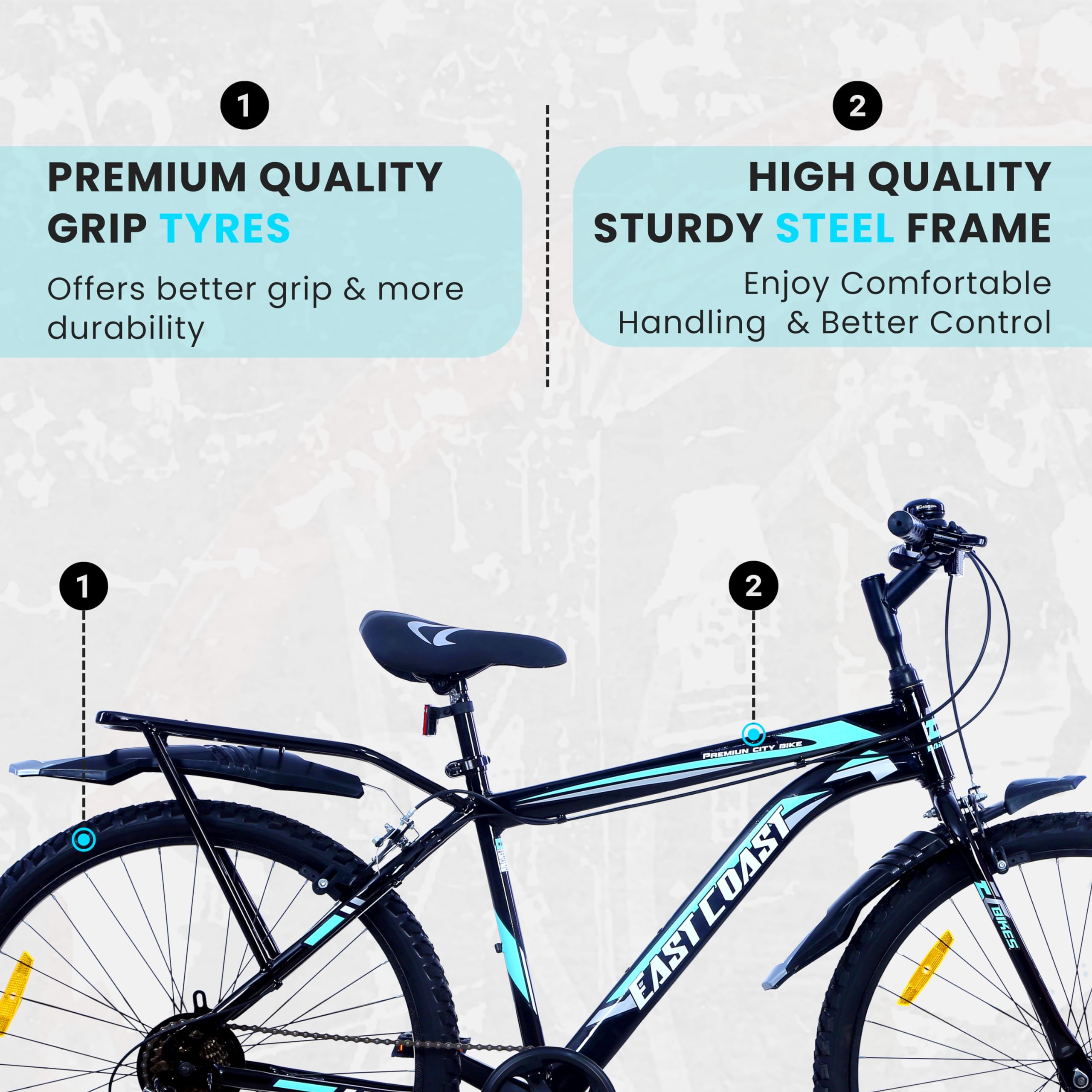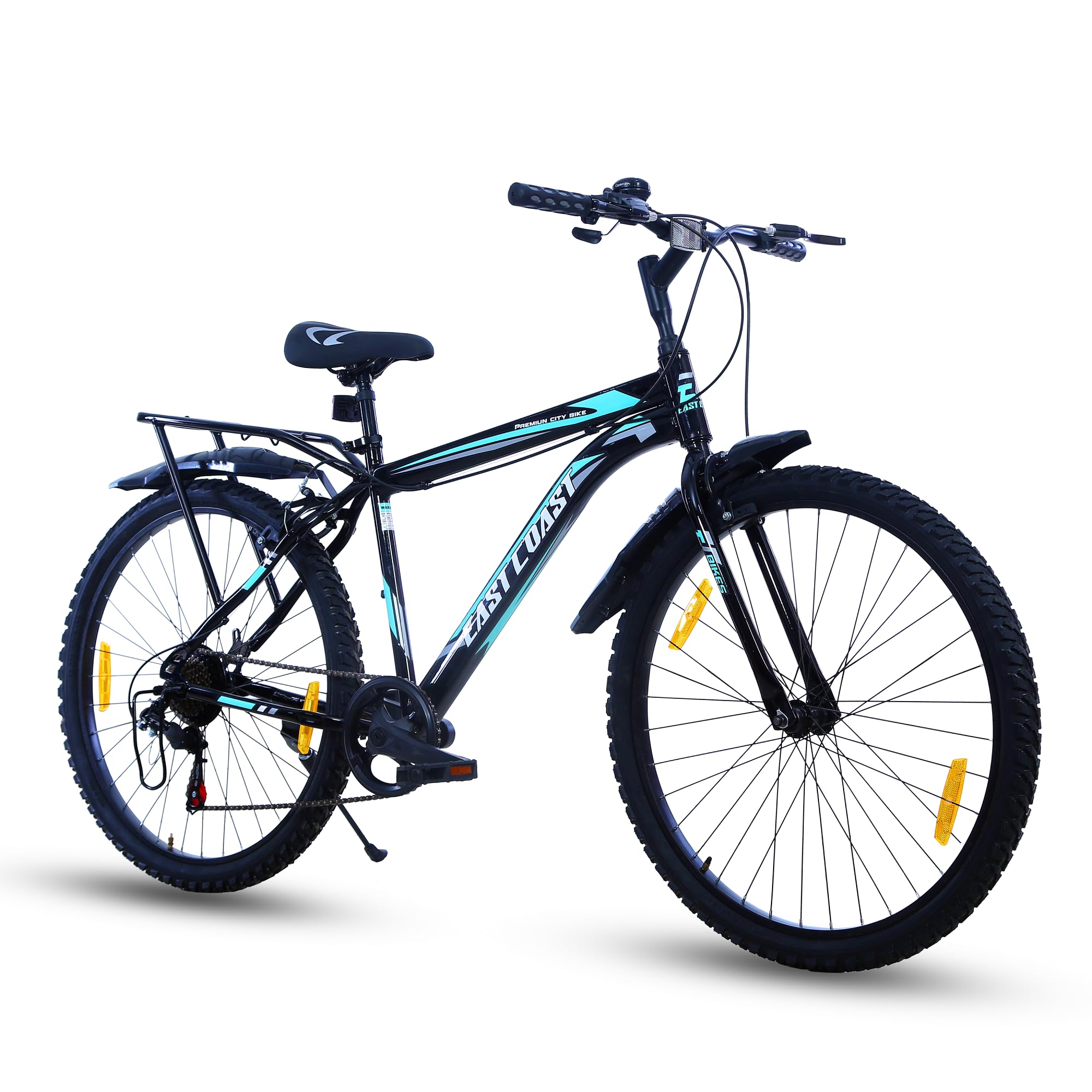 EAST COAST Premium City 7 Speed Cycle/Bicycle | 26T Mountain Bike | Hardtail Cycle with 18.5 Inch Frame, Caliper Brake, with Carrier, Ideal for 15+ Years (Black)