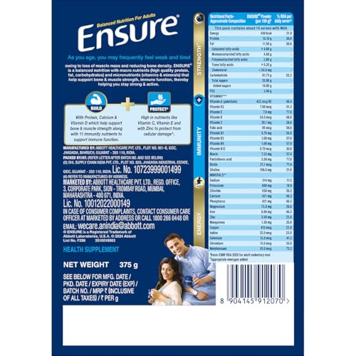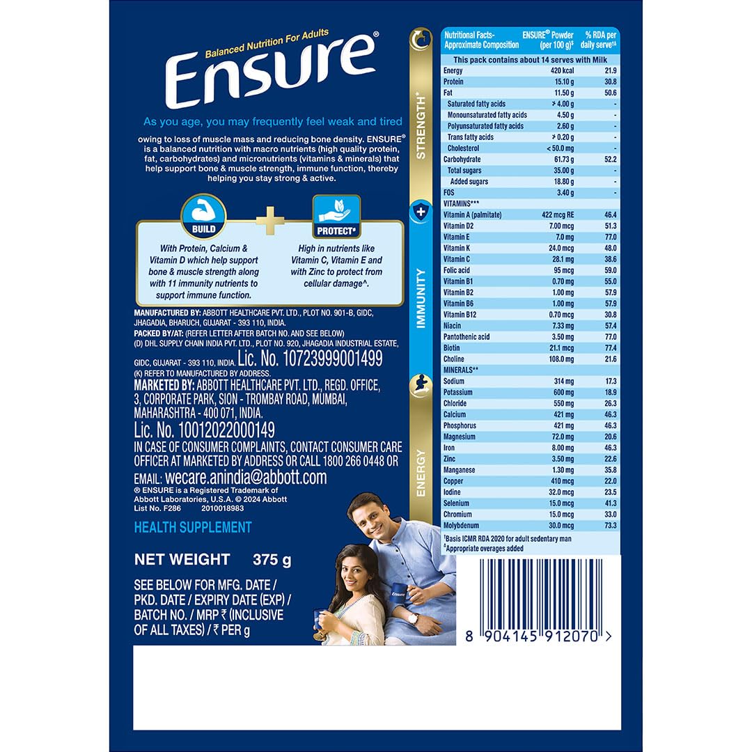 Ensure No 1 Nutritional Supplement Drink in the world|32 nutrients High Protein,Calcium,Vit D|Chocolate 375g
