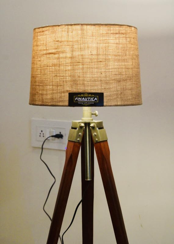 F N Finautica Wooden Italian Wooden Crafter Standard Size Tripod Floor Lamp with Jute Shade, Bulb and Holder, Pack of 1 LED