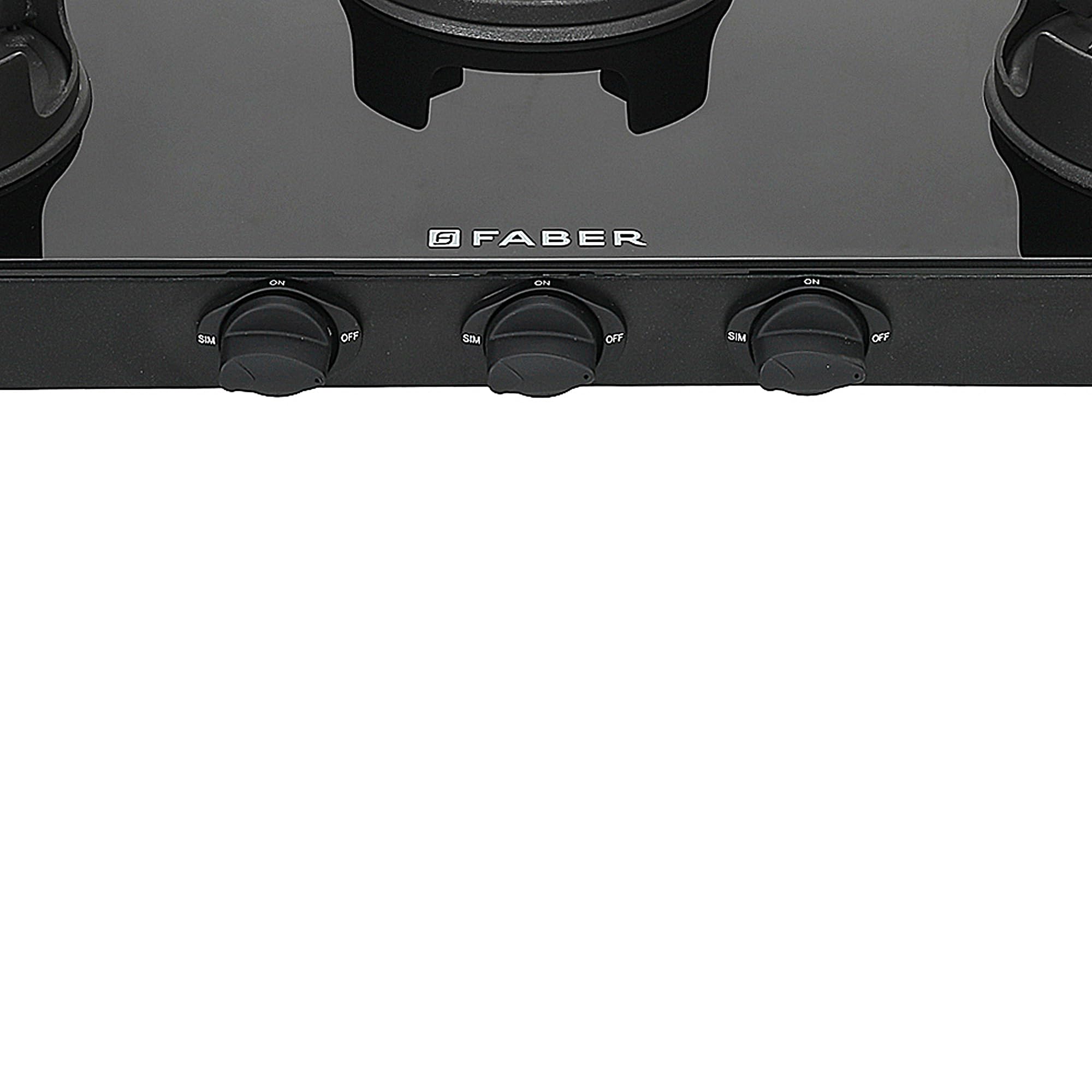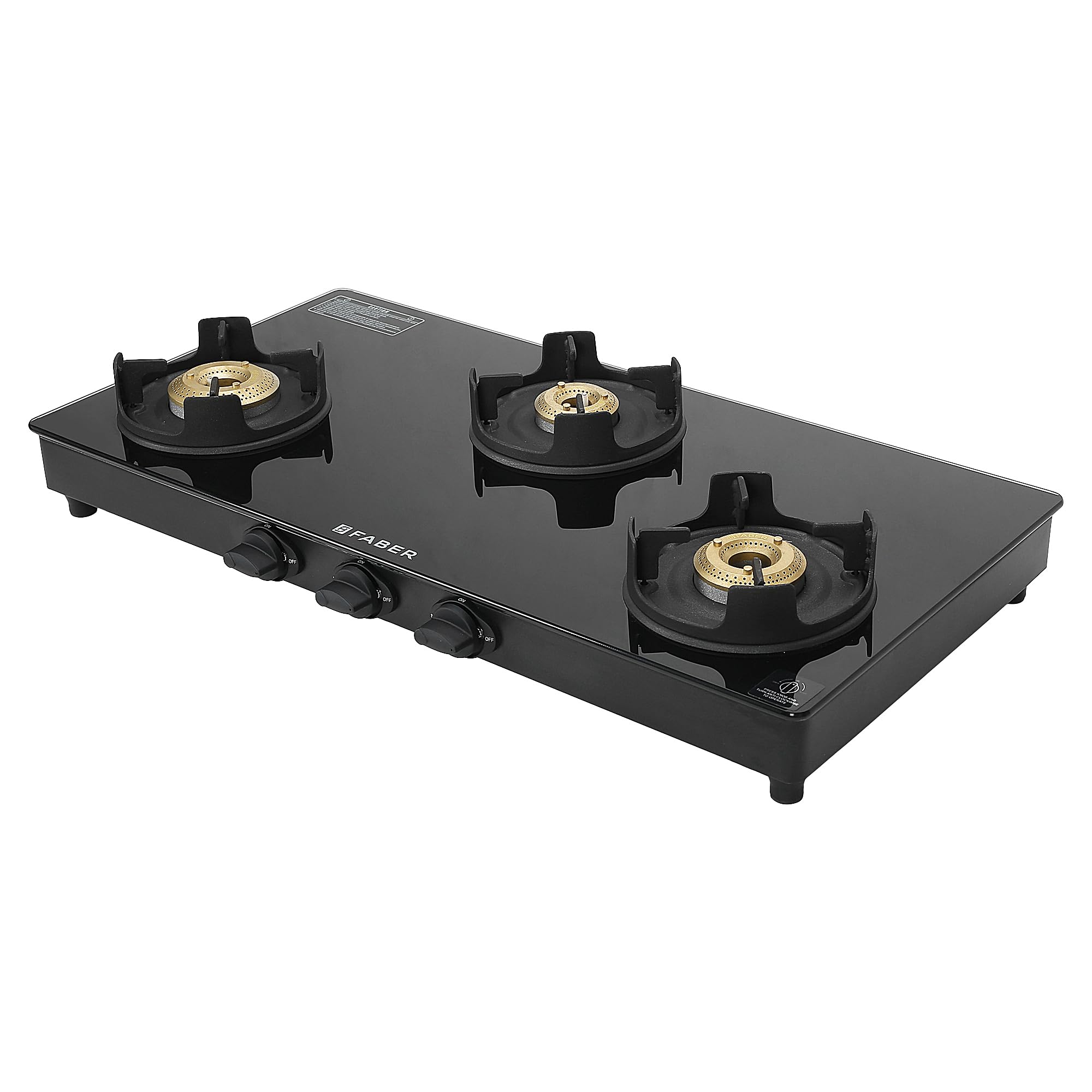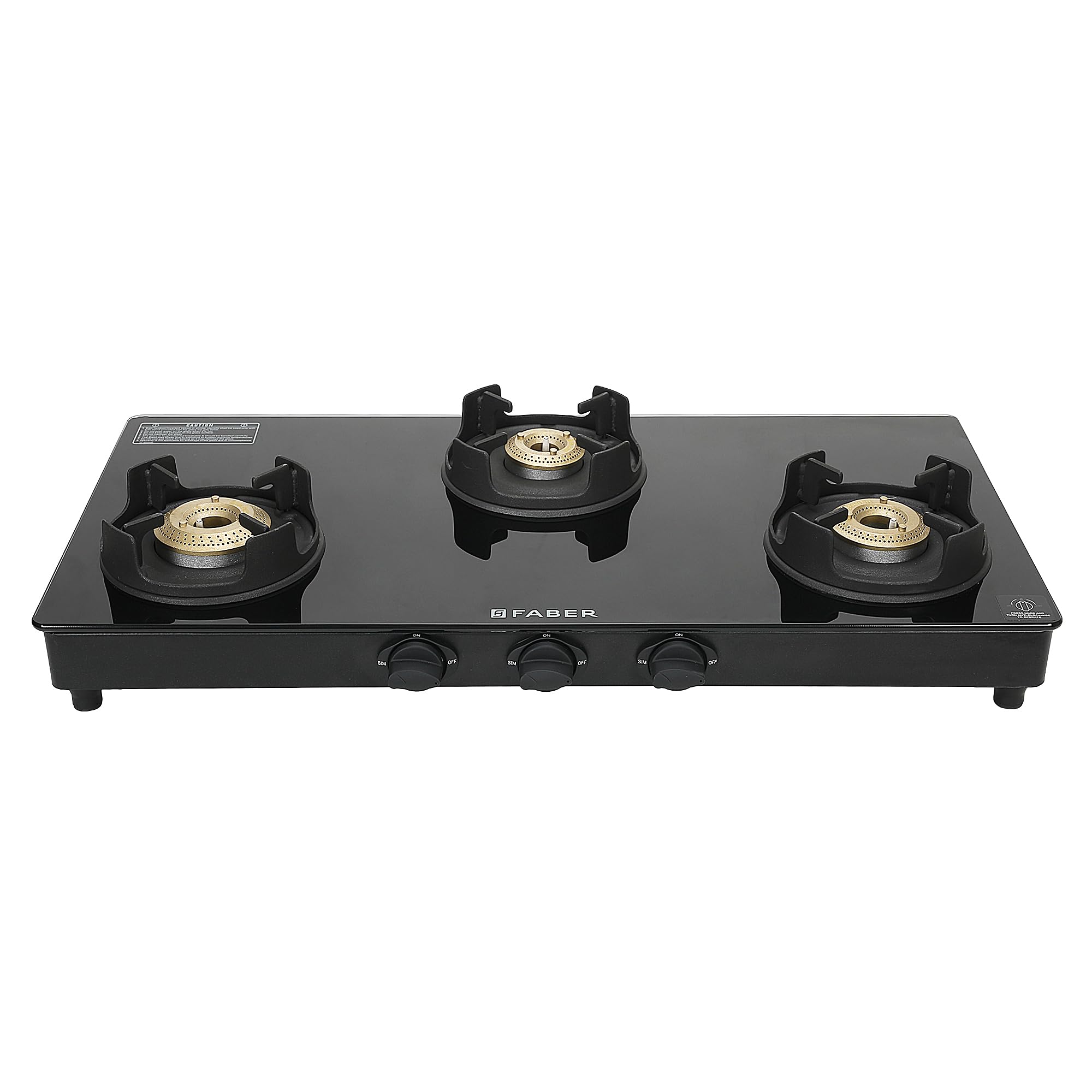 Faber 3 Burner Auto-Ignition Cooktop| ONYX AI 3BB BK |Black ABS Knobs|' Brass Burners| Cast Iron Pan Support| Black Glass Finish |7 Yrs Warranty Glass & 5 Yrs on Burner & Valve | 2 Yrs Comprehensive
