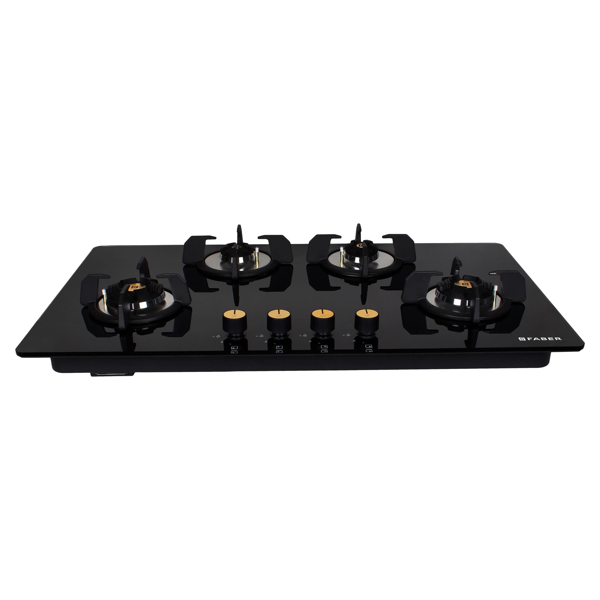 Faber Hob/Hobtop 4 Brass Burner Auto Ignition Glass Top Gas Stove(Maxus HT904 CRS BR CI AI) Black