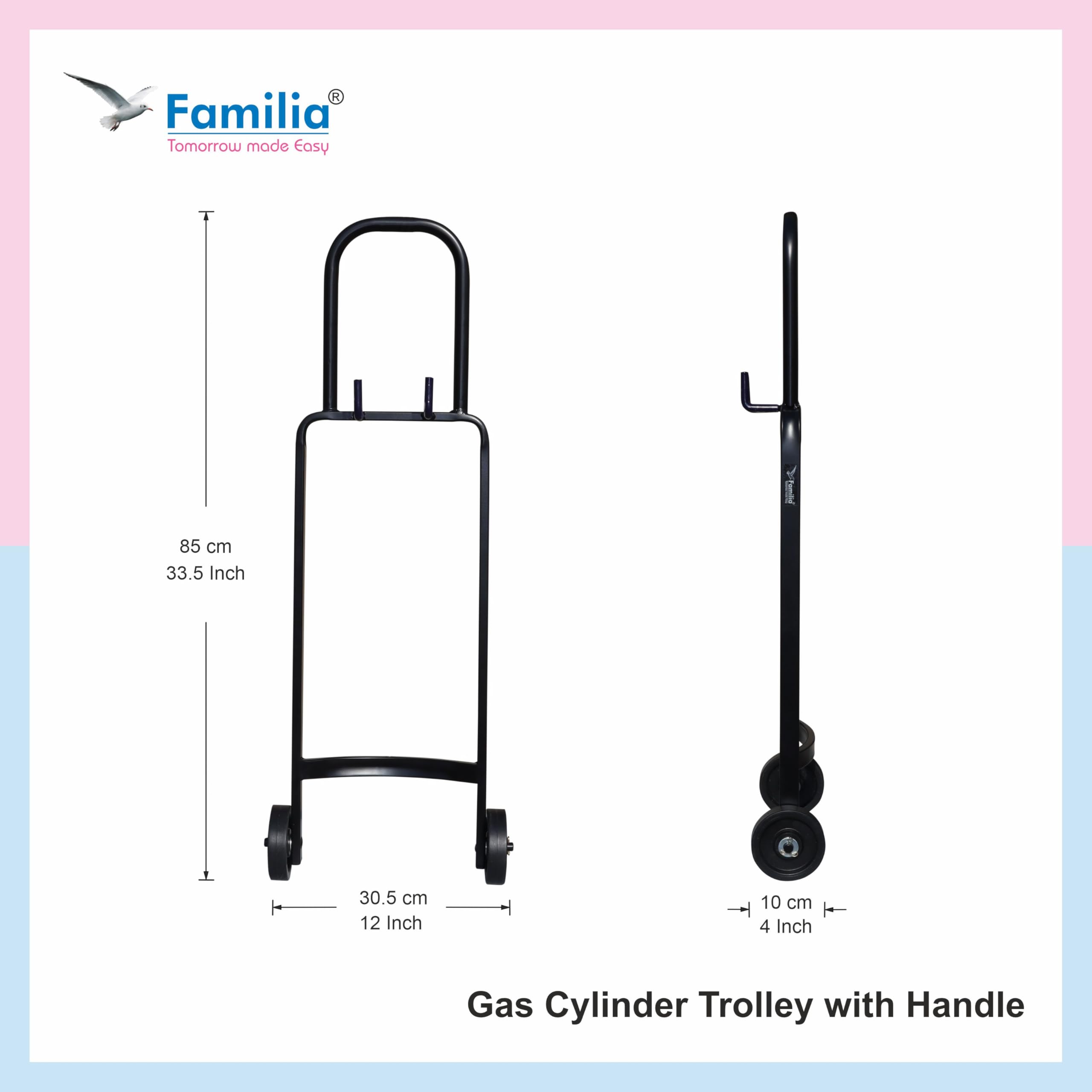 Details: TheFamilia Heavy Duty LPG Gas Cylinder Trolley is designed for easy, safe, and hassle-free movement of gas cylinders. Built with a robust and durable frame, it provides strong support and long-lasting performance. The trolley features 4-inch smooth-rolling wheels, ensuring effortless movement across various surfaces without scratches or damage.