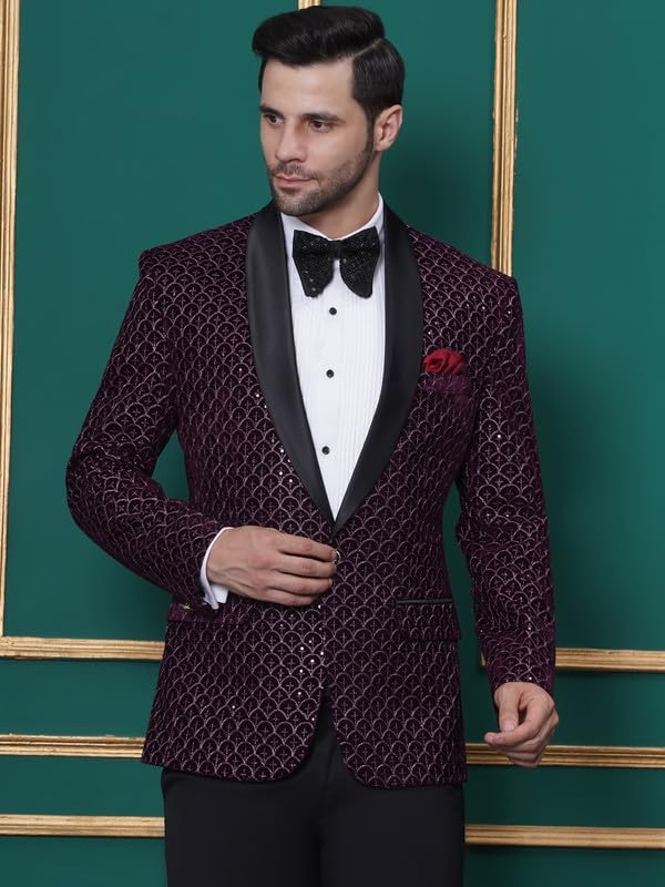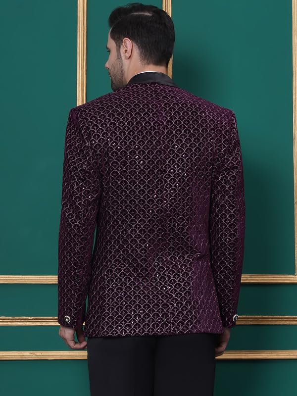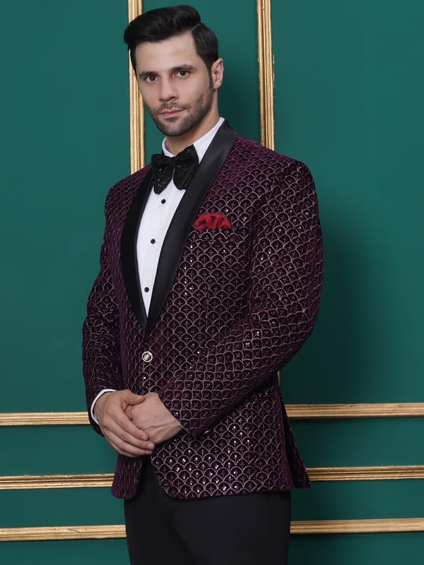 FAVOROSKI Wedding Sequence Blazer Suit for Men | Purple Coat for Men Blazer | Relaxed Fit Blazer for Men Wedding Party | Embroidered Velvet Blazer | Blazer Coat for Men Wedding Party