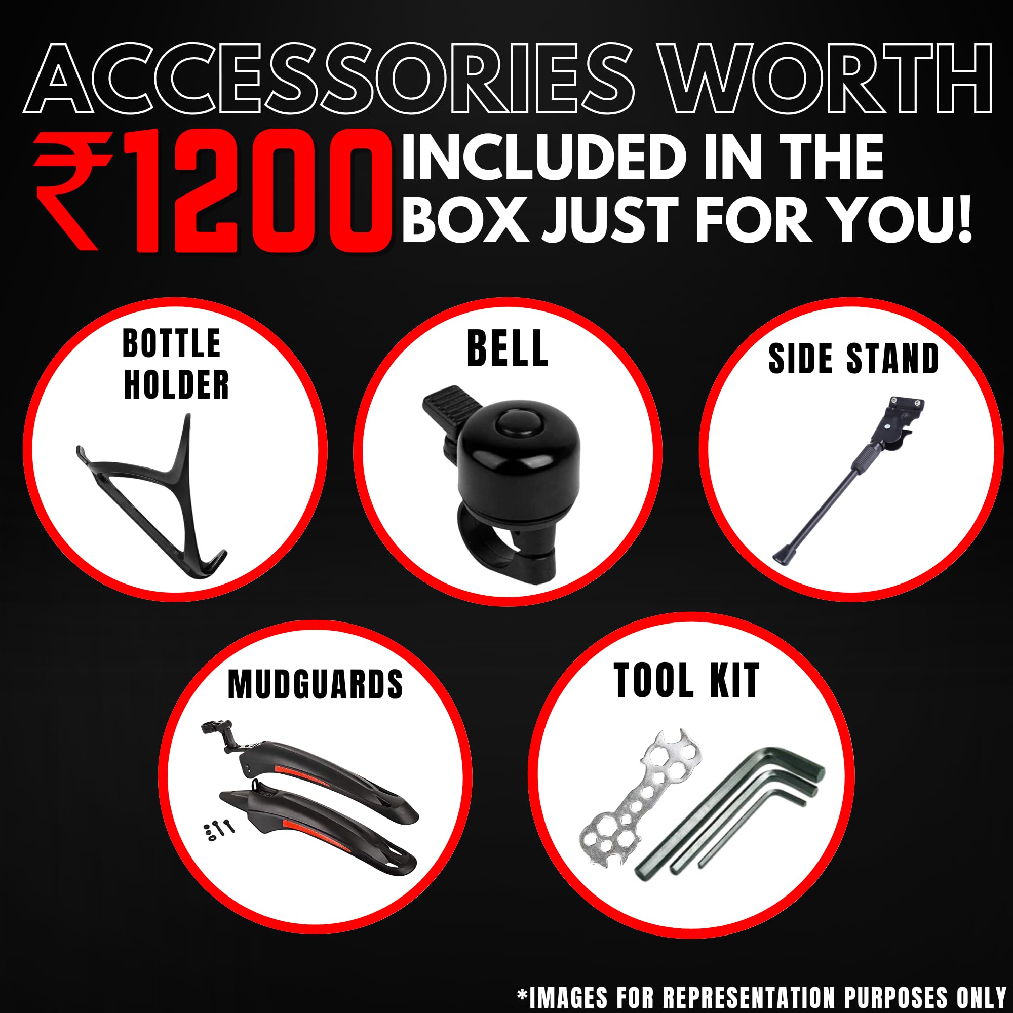 FitTrip Dominator 29 Inch MTB Cycle for Men | 21 SPD Shimano Gearset | Zoom Lockout Suspension | Clarks Dual Disk Brakes | Dual Tone Paintjob with Crystals | Unisex (Rouge Red)