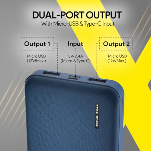 FLiX(Beetel) New Launch PowerXtreme 10,000mAh 12W Slim Power Bank,USB C/Micro USB Input,Dual USB A Output,Compatible with iPhone (Type A to Lightning), Samsung, Google Pixel, Oneplus(Cobalt Blue-P10)