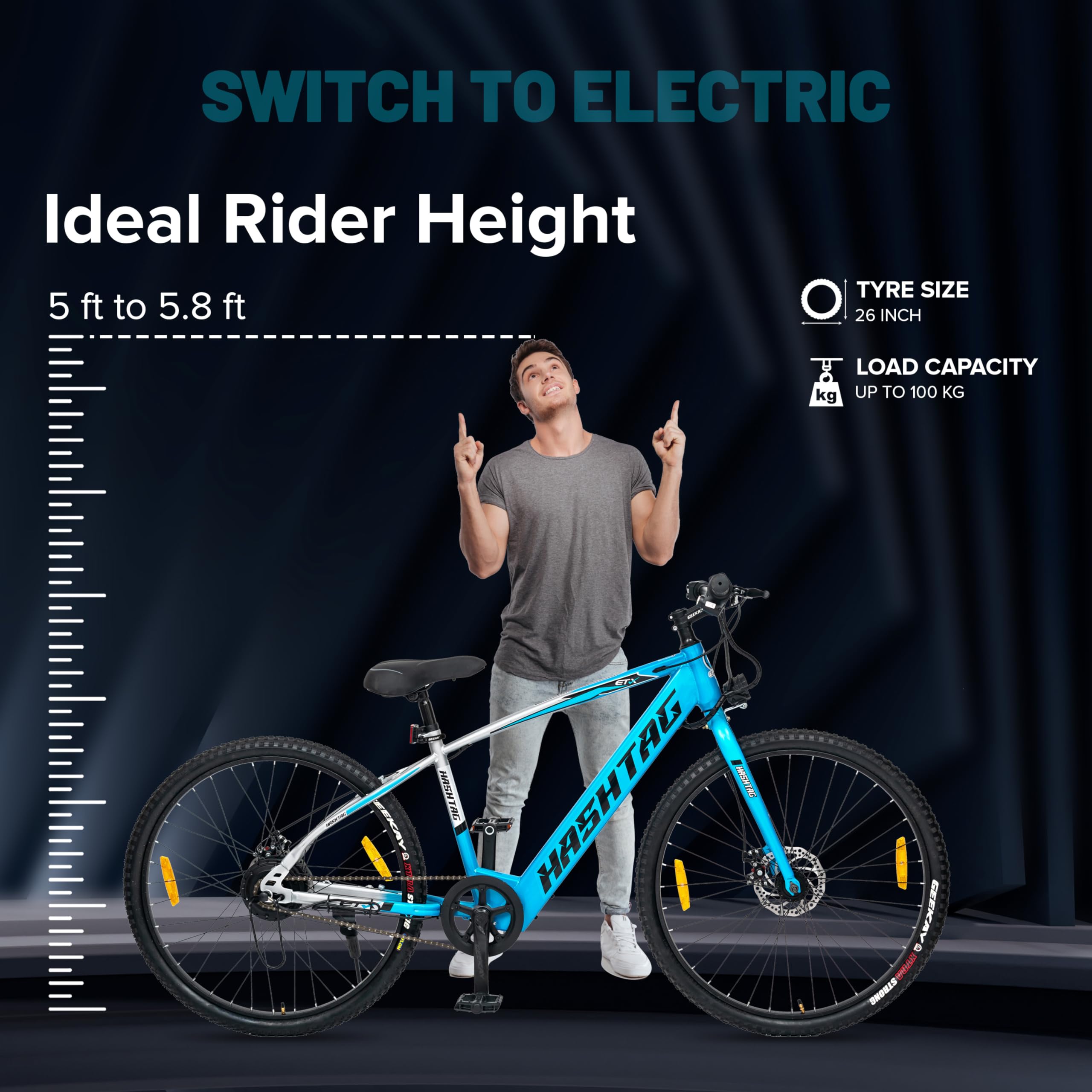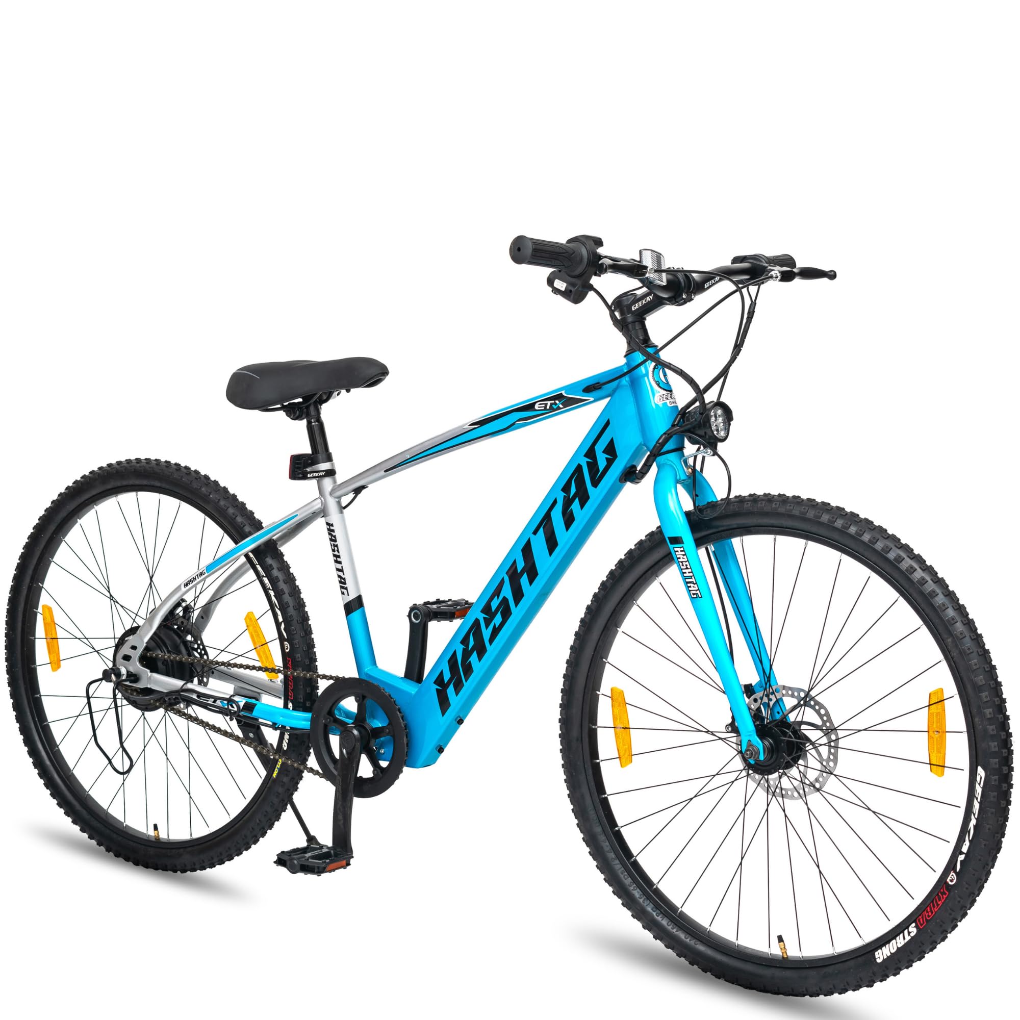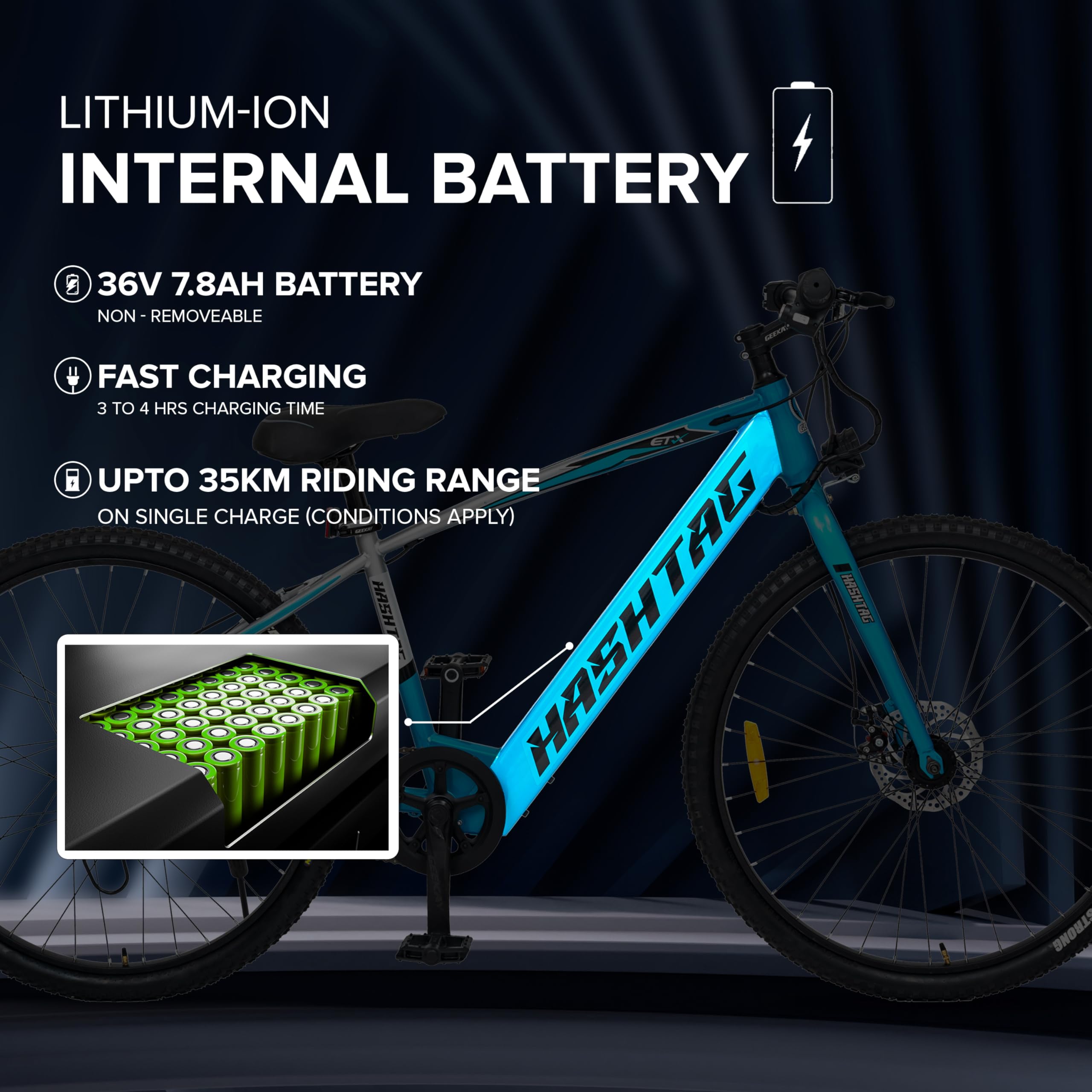 Geekay ETX 26T Hybrid Electric Cycle with Dual Disc Brakes | Front LED Light & Horn, 7.8 Ah Non-Removable Li-Ion Battery, 250W BLDC Hub Motor with 2 Year Warranty on Battery & Motor - Electric Blue