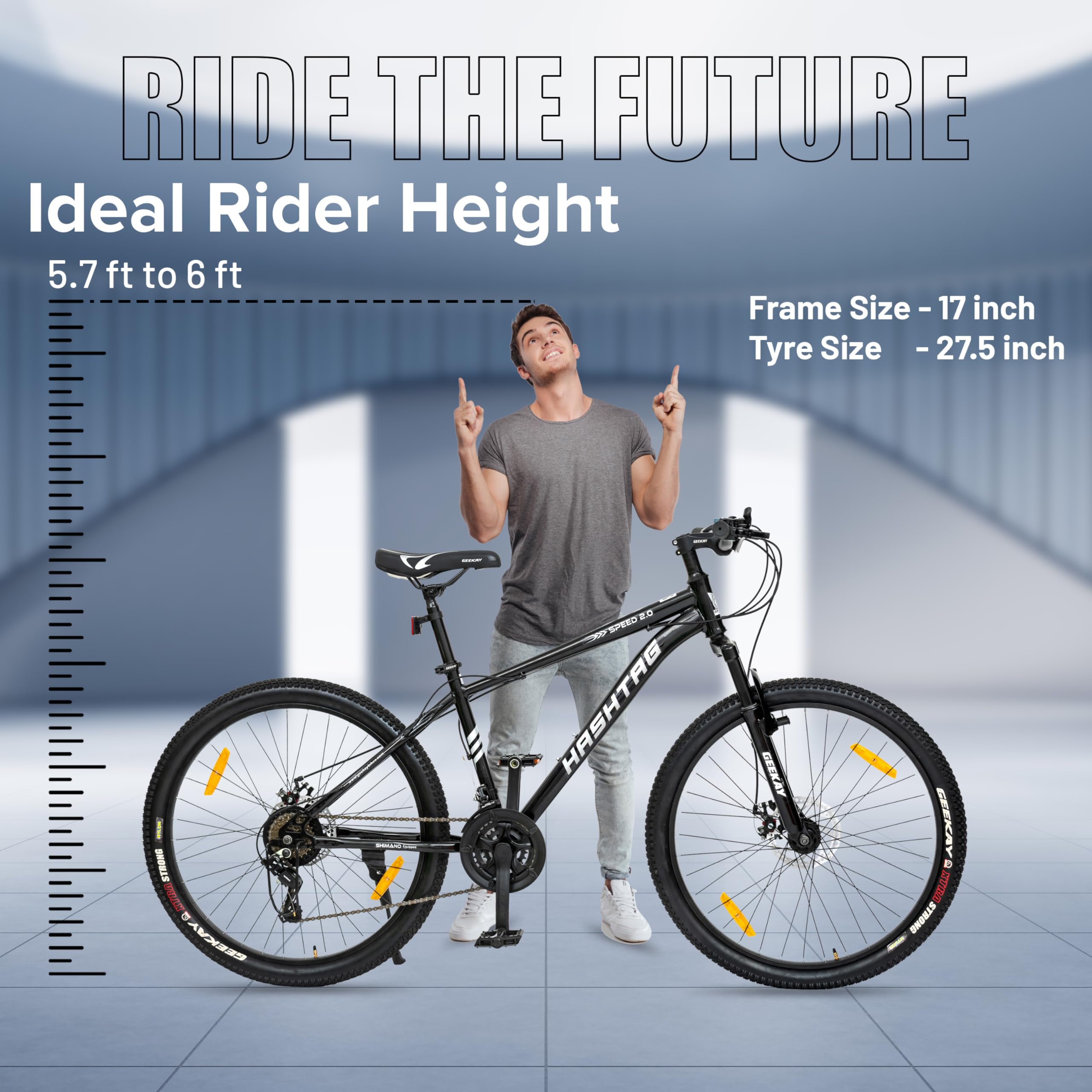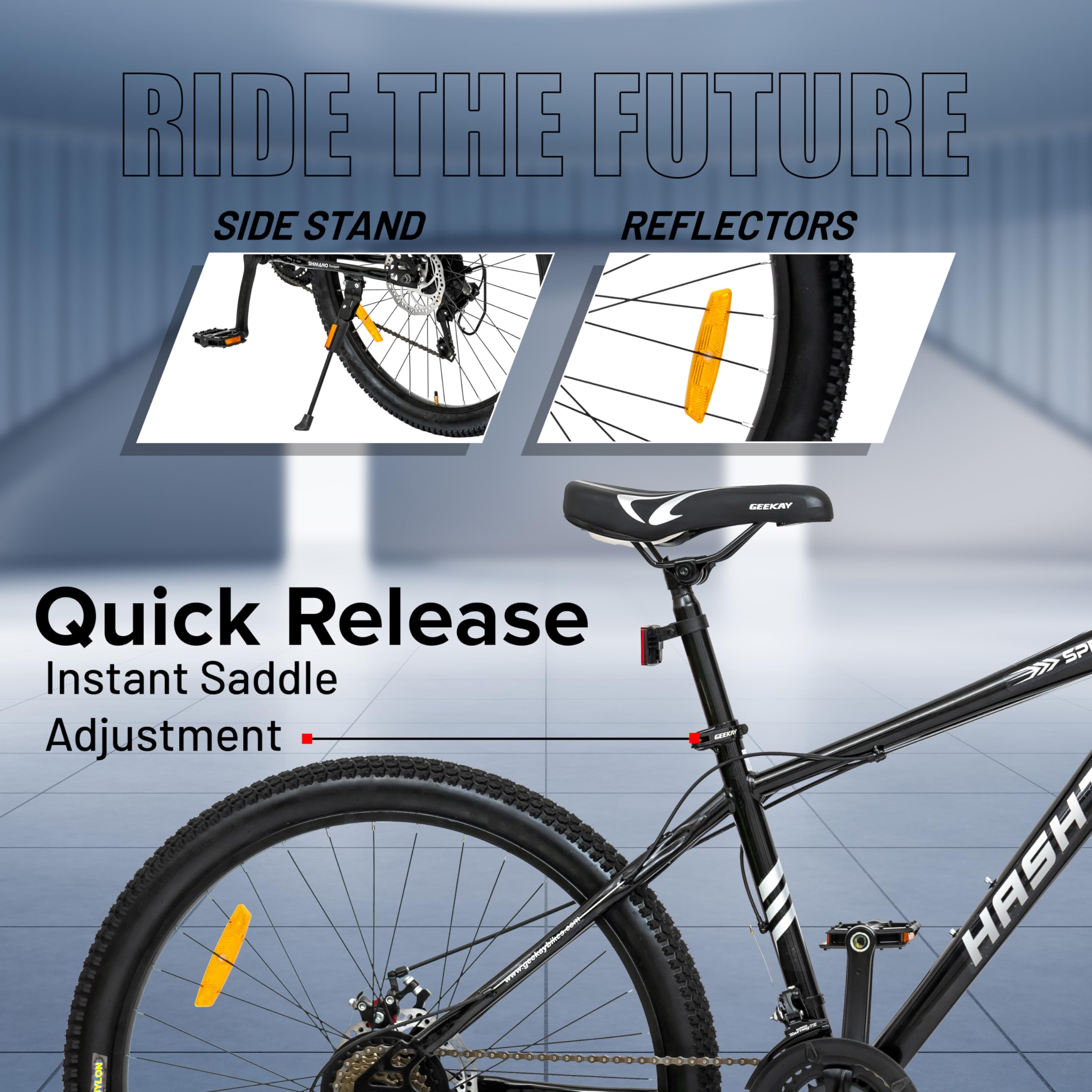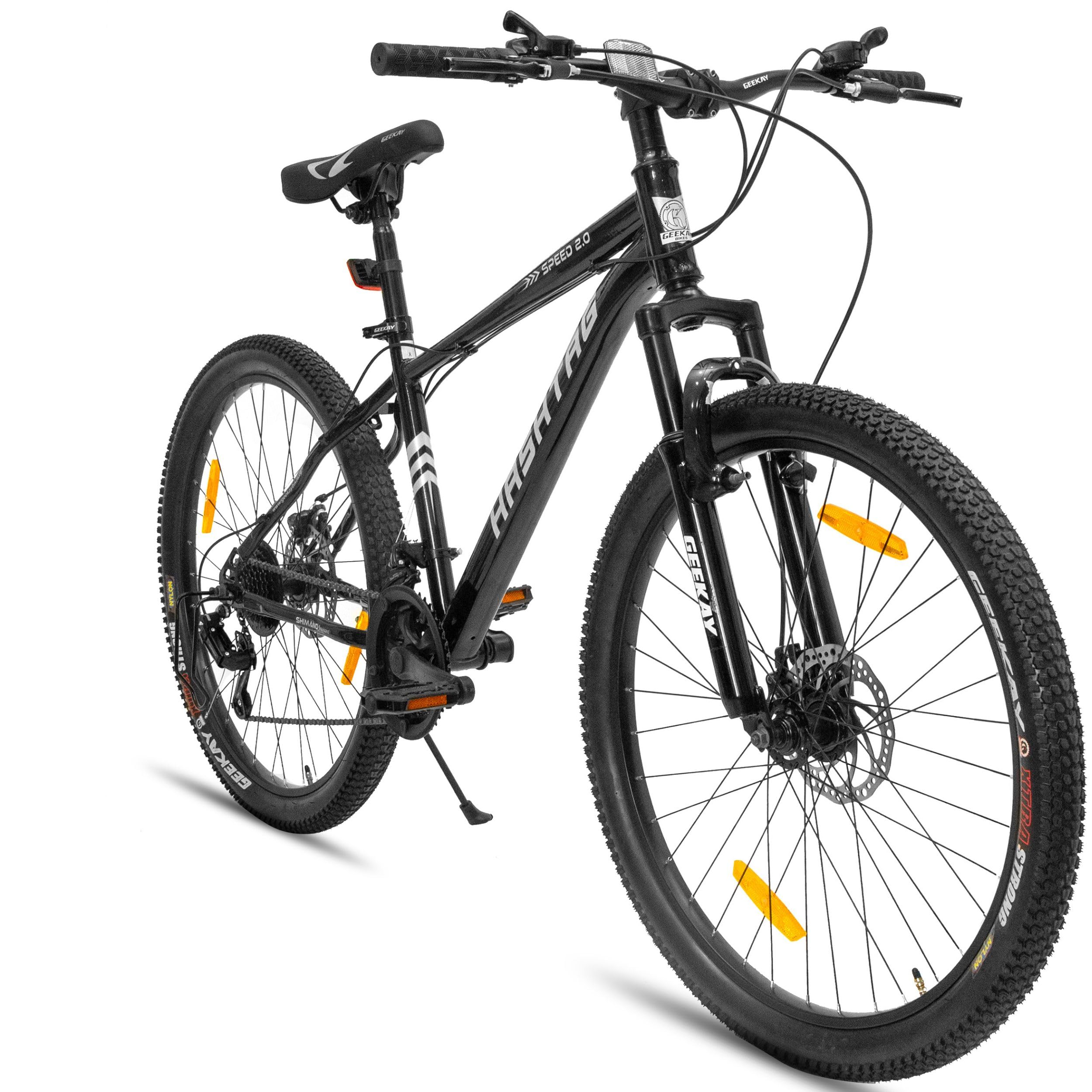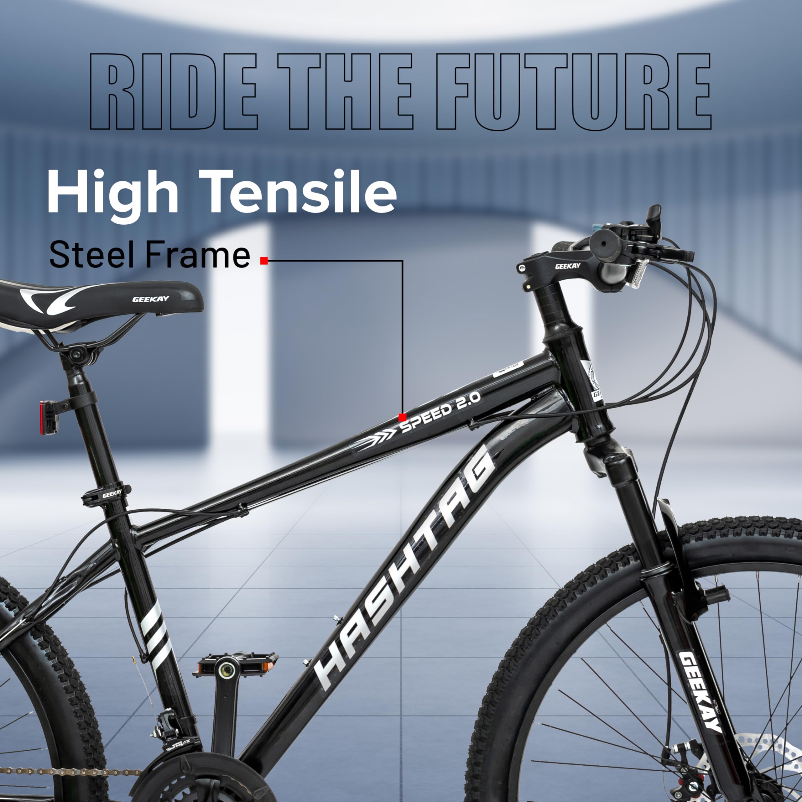 Geekay Speed 2.0 Multispeed 26T Mountain Bike for Men with 21 Speed Gears, 17 Inches Steel Frame, Front Suspension and Dual Disc Brakes, Ideal Rider Age 10+ Years - Matt Black