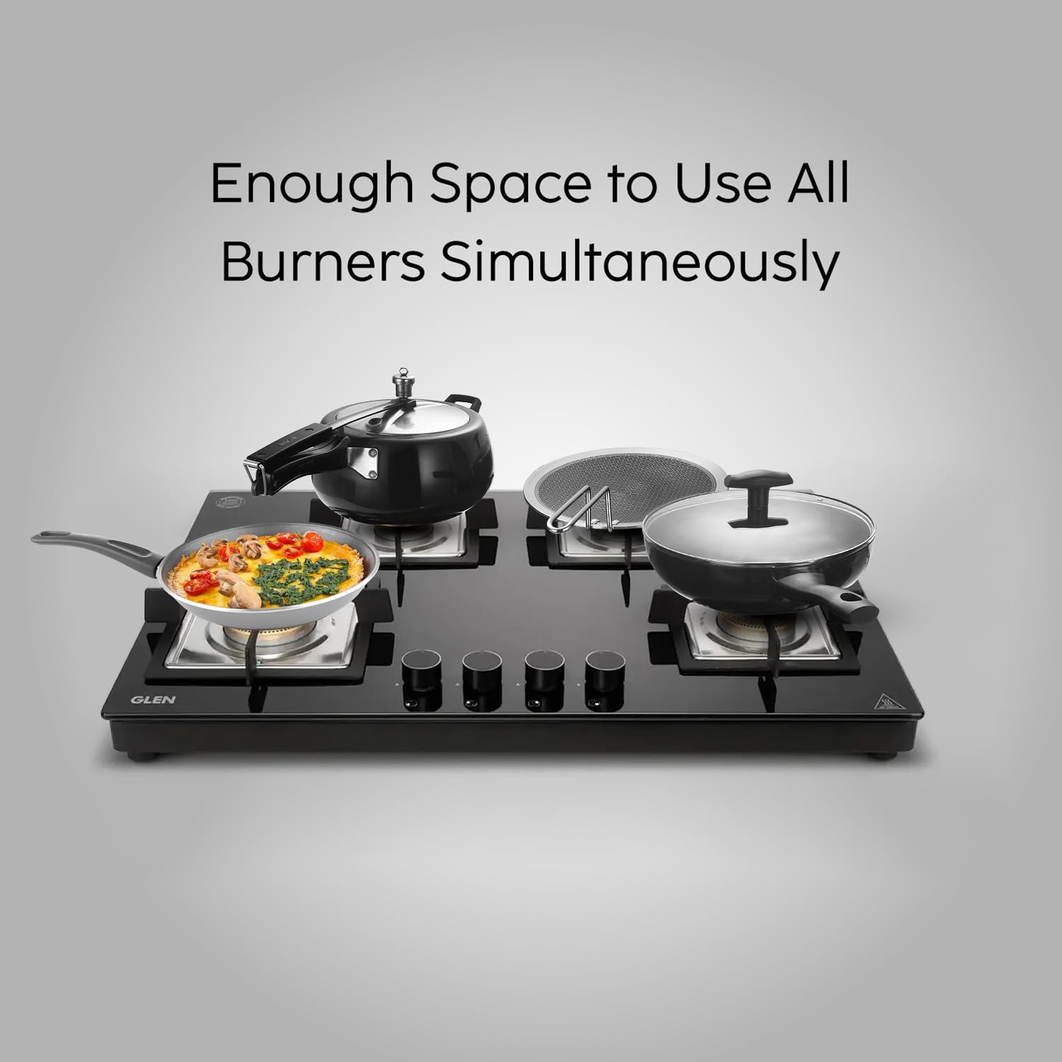 Glen 4 Burner Ultra Slim Auto Ignition Premium Gas Stove | 8 MM Toughened Glass Top | Black | Forged Brass Burners | Warranty 2 Years Standard (BH1074USBL75_1)