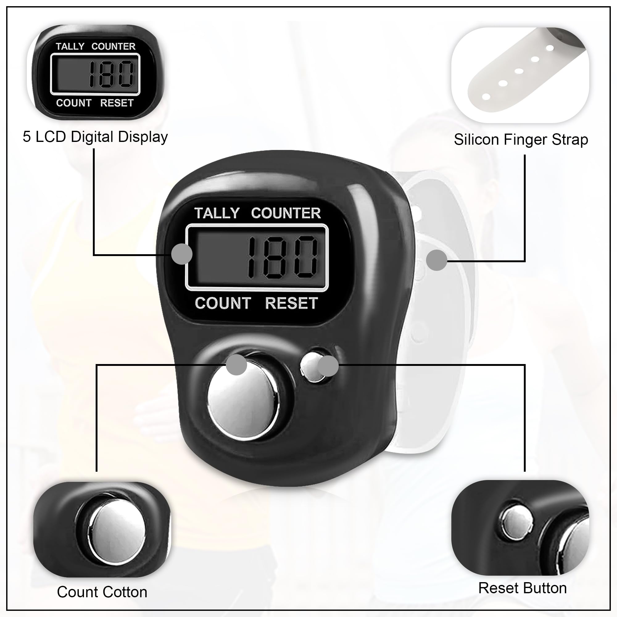 GLUN® Finger Ring Counter, Pack of 2, 4 Digit Hand Clicker Tally Counter Multicolour with Clear Visible Numbers, Useful for Various Counting Purposes