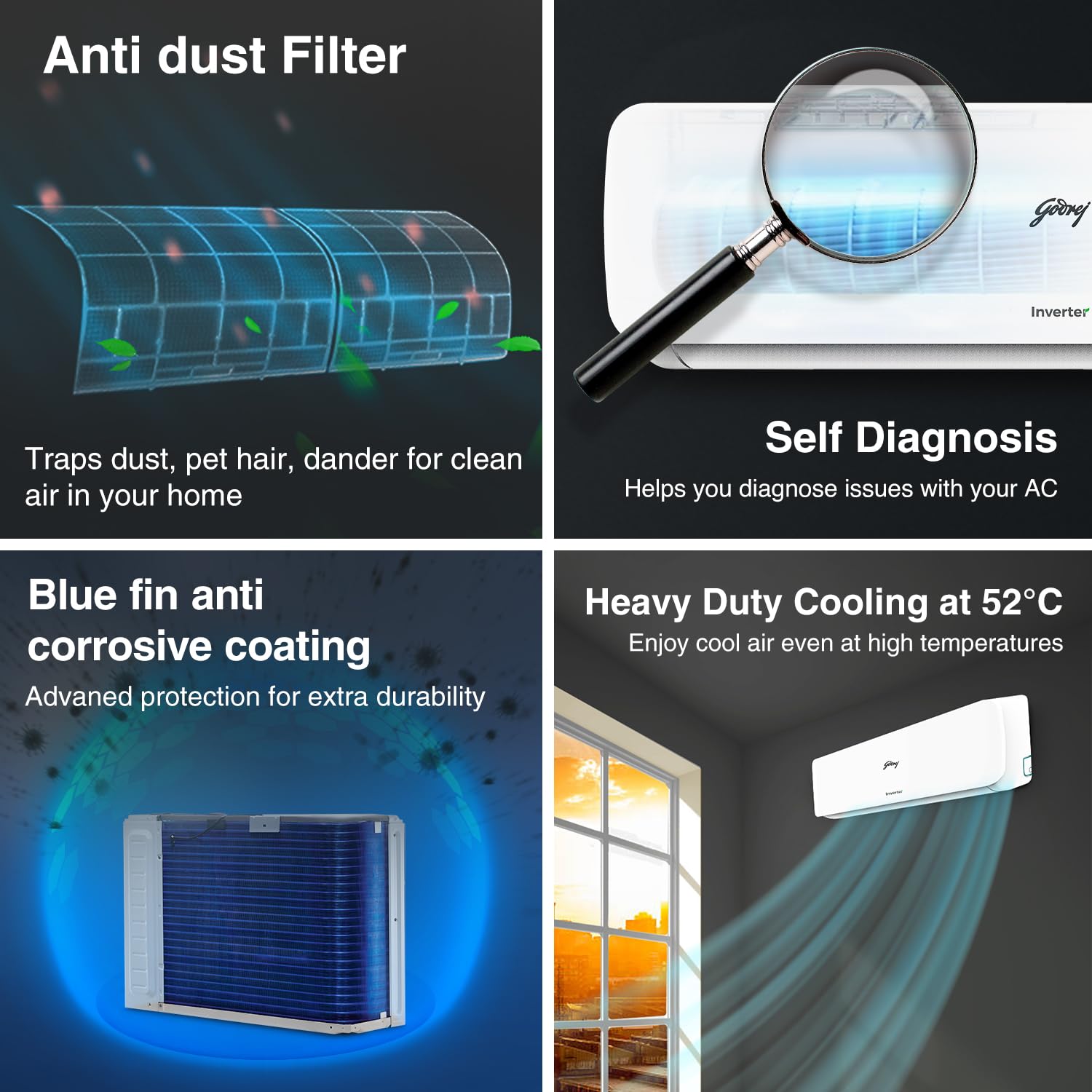 Godrej 1.5 Ton 3 Star, 5 Years Comprehensive Warranty, 5-In-1 Convertible Cooling, Inverter Split AC (Copper, Heavy-Duty Cooling at 52 Deg Celcius, 2024 Model, AC 1.5T EI 18NINV3R32 WYE, White)
