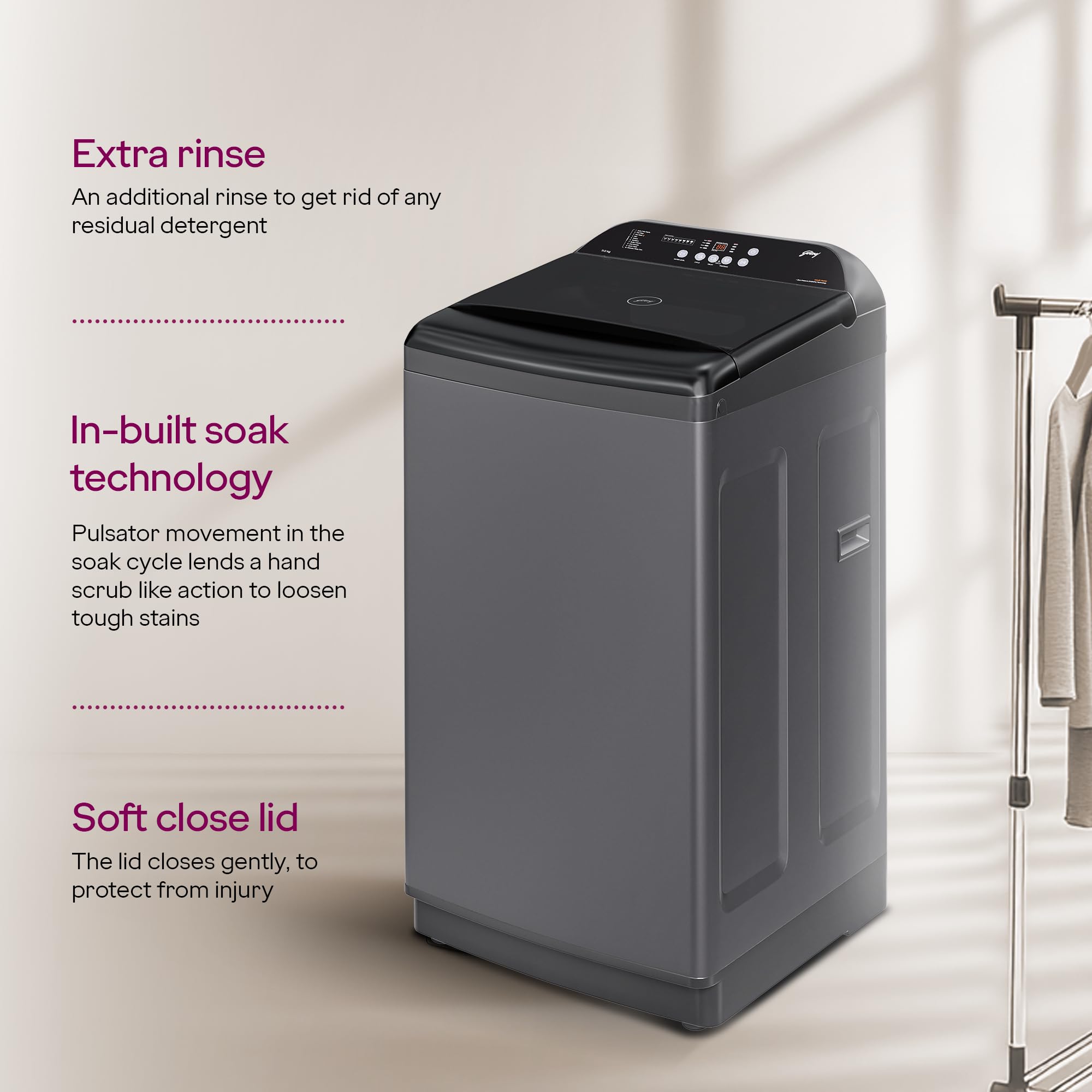 Brand: GodrejColor: Glacial GreyFeatures: Fully-automatic top load washing machine with Zero pressure Technology: Acu Wash Drum's contours provides low &... Read more