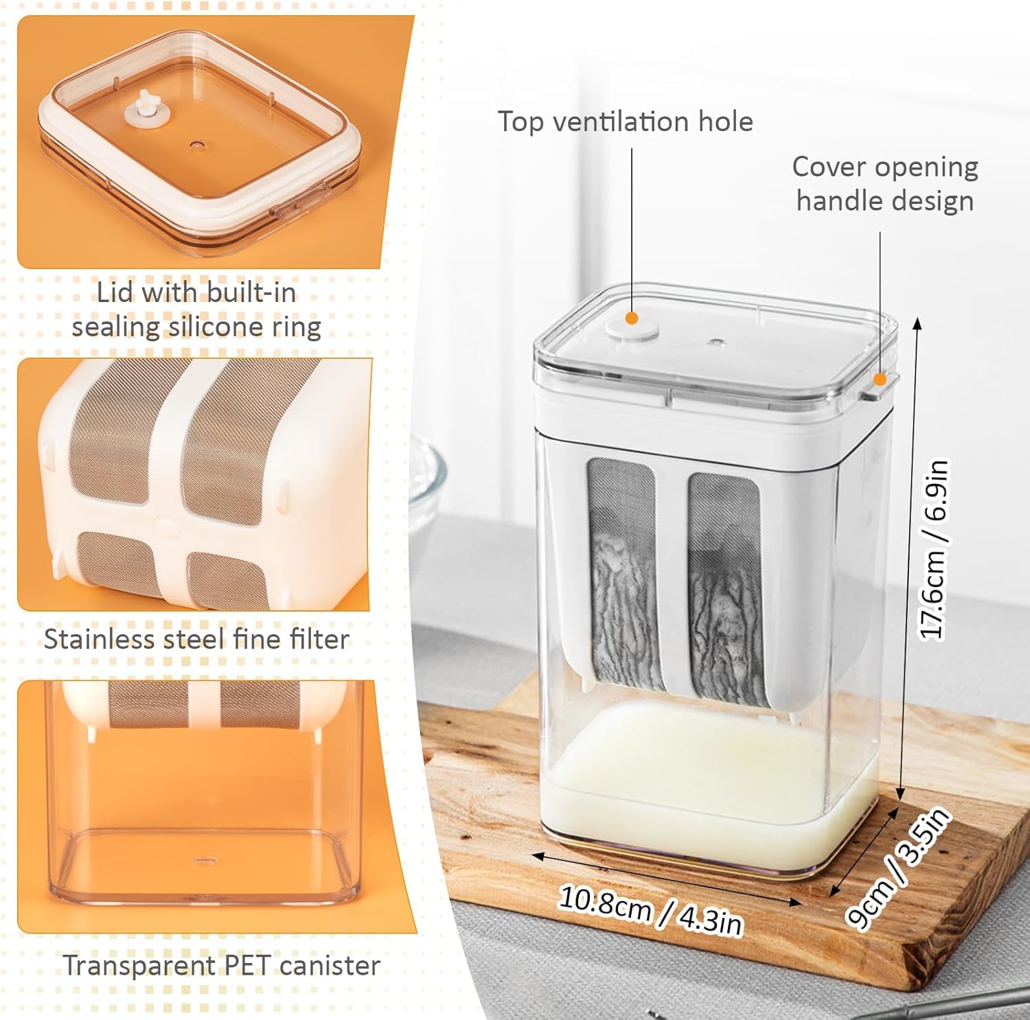 Greek Yogurt Strainer, 1100ml Multi Yoghurt Maker Strainer with Fine Mesh Bag & Lid for Thick Greek Yogurt, Soybean Milk, Kefir, Berries, Soup, Fruit Juice, Coffee
