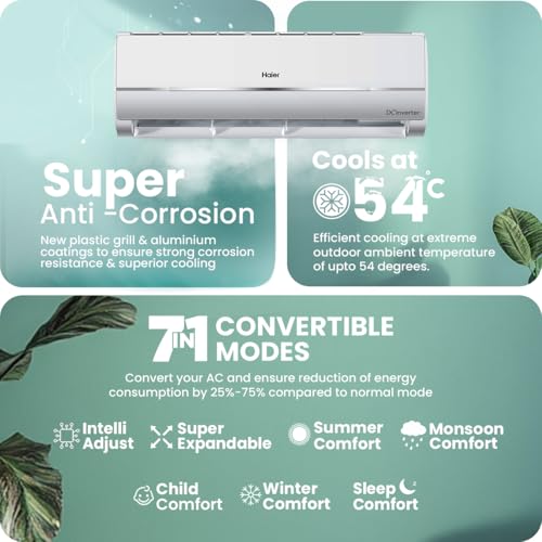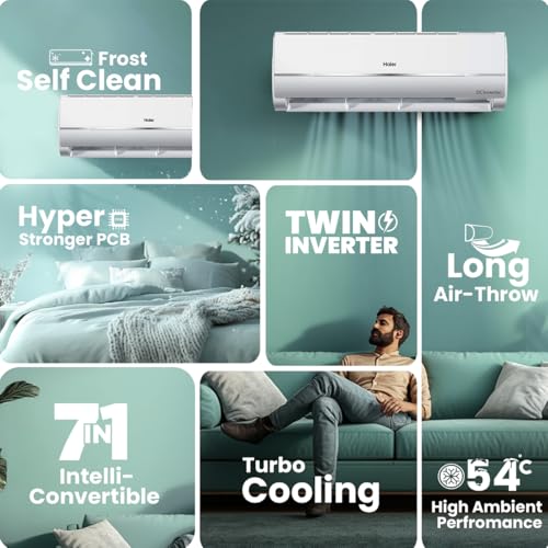 Haier 1.25 Ton 3 Star Twin Inverter Split AC (3900 Watts, Copper, 7 in 1 Convertible, Frost Self Clean, HD Filter, Cools at 54°C, Long Air Throw - HSU15V-TMS3BN-INV) price under 30000