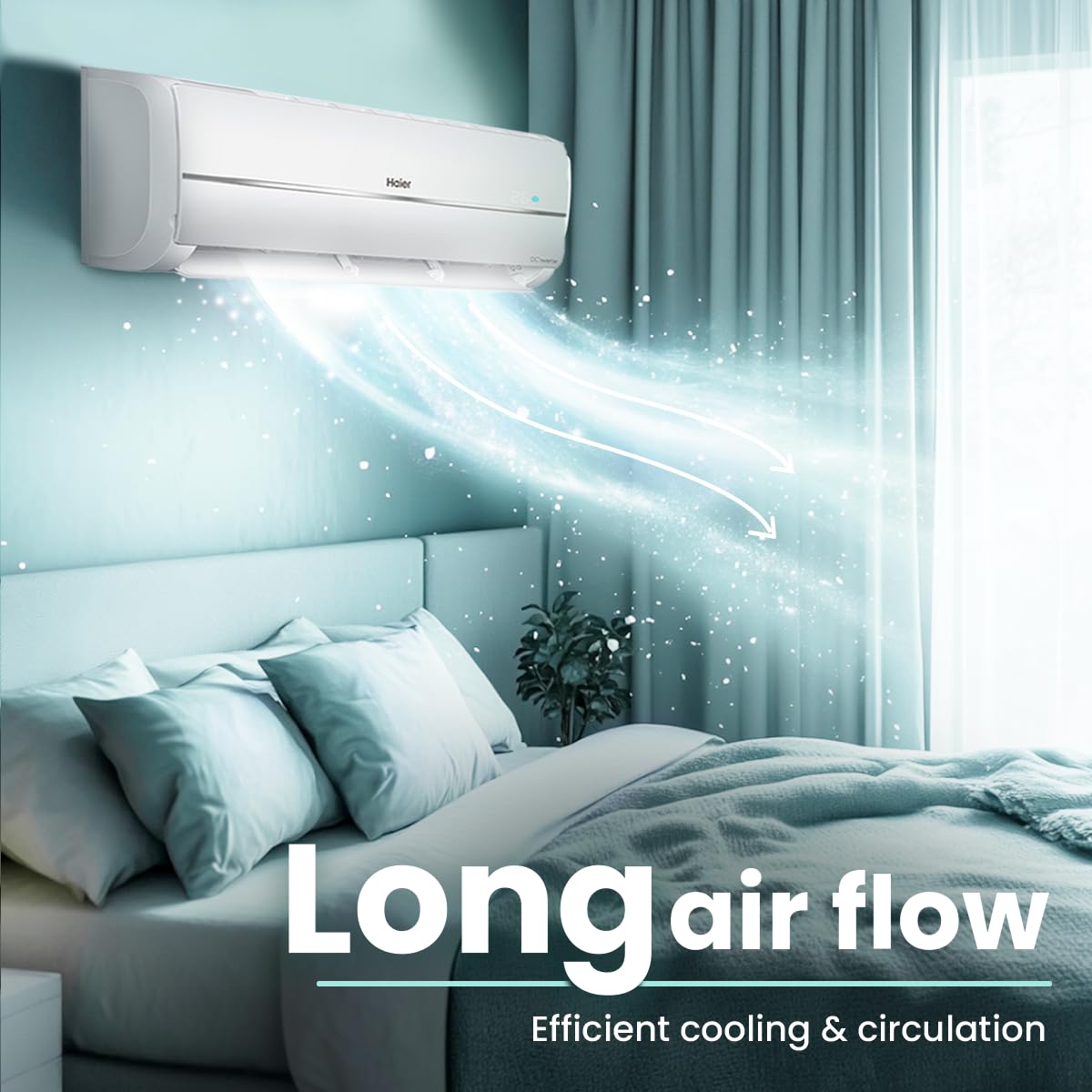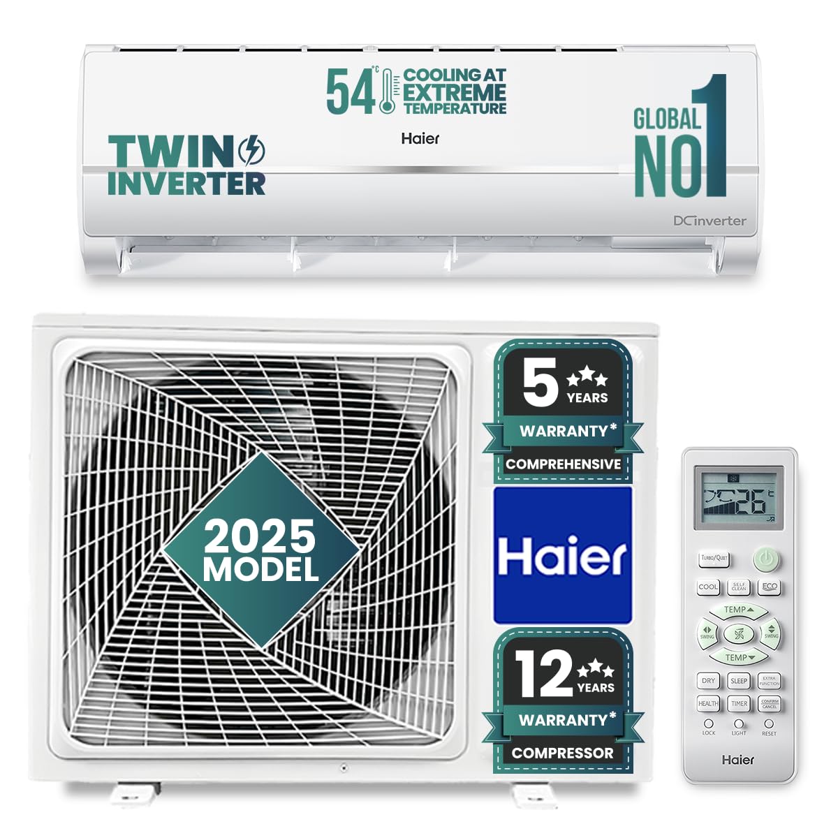 Haier 1.5 Ton 3 Star Twin Inverter Split AC (Copper, 5 in 1 Convertible, Anti Bacterial Filter, Cools at 54°C Temp, Long Air Throw - HSU17V-TMS3BN-INV, 2024 Model, White)
