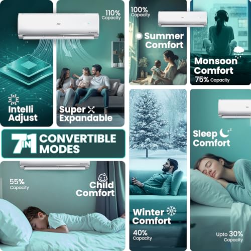 Haier 1.5 Ton 3 Star Twin Inverter Split AC (Copper, 7 in 1 Convertible, Frost Self Clean, HD Filter, Cools at 54°C, Long Air Throw - HSU17VP-TQS3BN-INV, White)