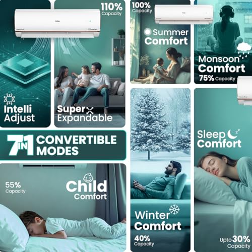 Haier 1.5 Ton 4 Star Triple Inverter Smart Split AC (5250 Watts, Copper, Wi-Fi, 4-Way Swing, 7 in 1 Convertible, Frost Self Clean, HD Filter, Cools at 60°C - HSU18K-PYFR4BN-INV, White)