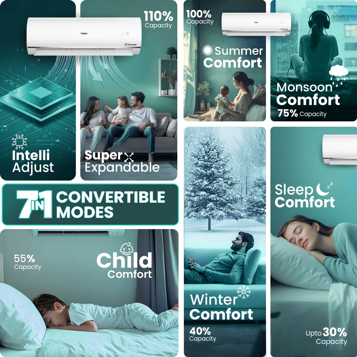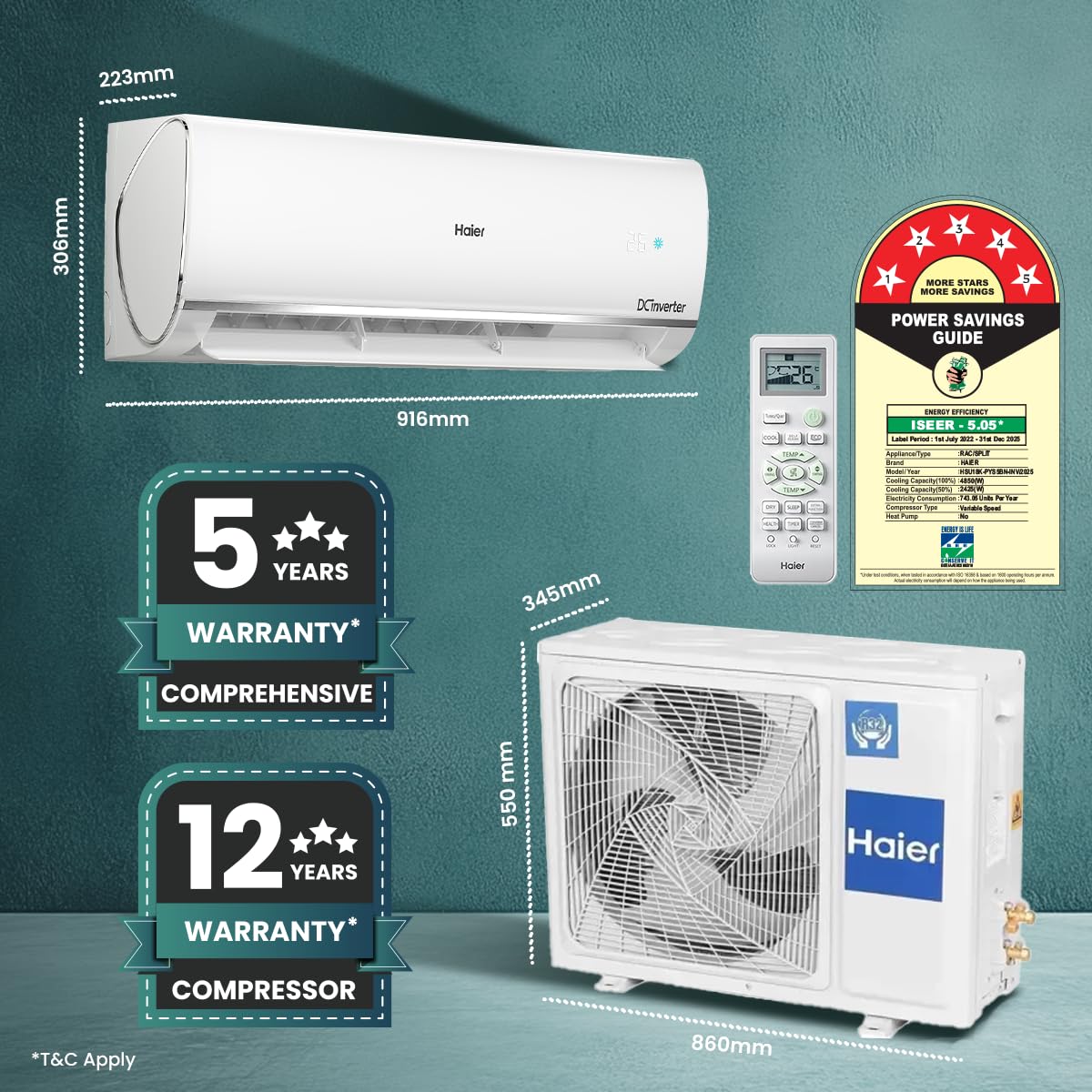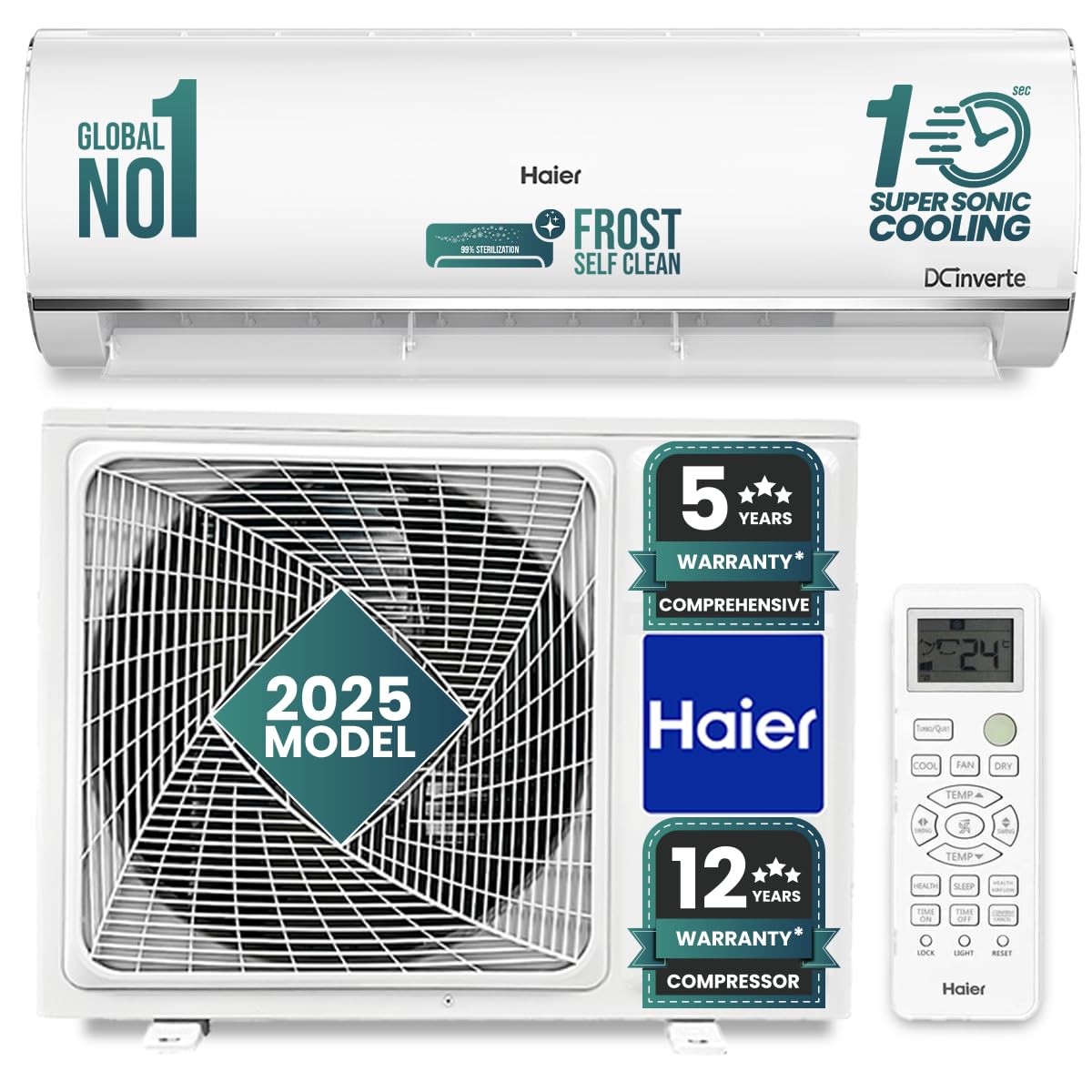 Haier 1.5 Ton 5 Star Triple Inverter Split AC (4850 W, Copper, 7 in 1 Convertible, 4-Way Swing, Frost Self Clean, HD Filter, Cools at 60°C, 20 Mtr. Air Throw - HSU18K-PYSS5BN-INV, 2024 Model - White)