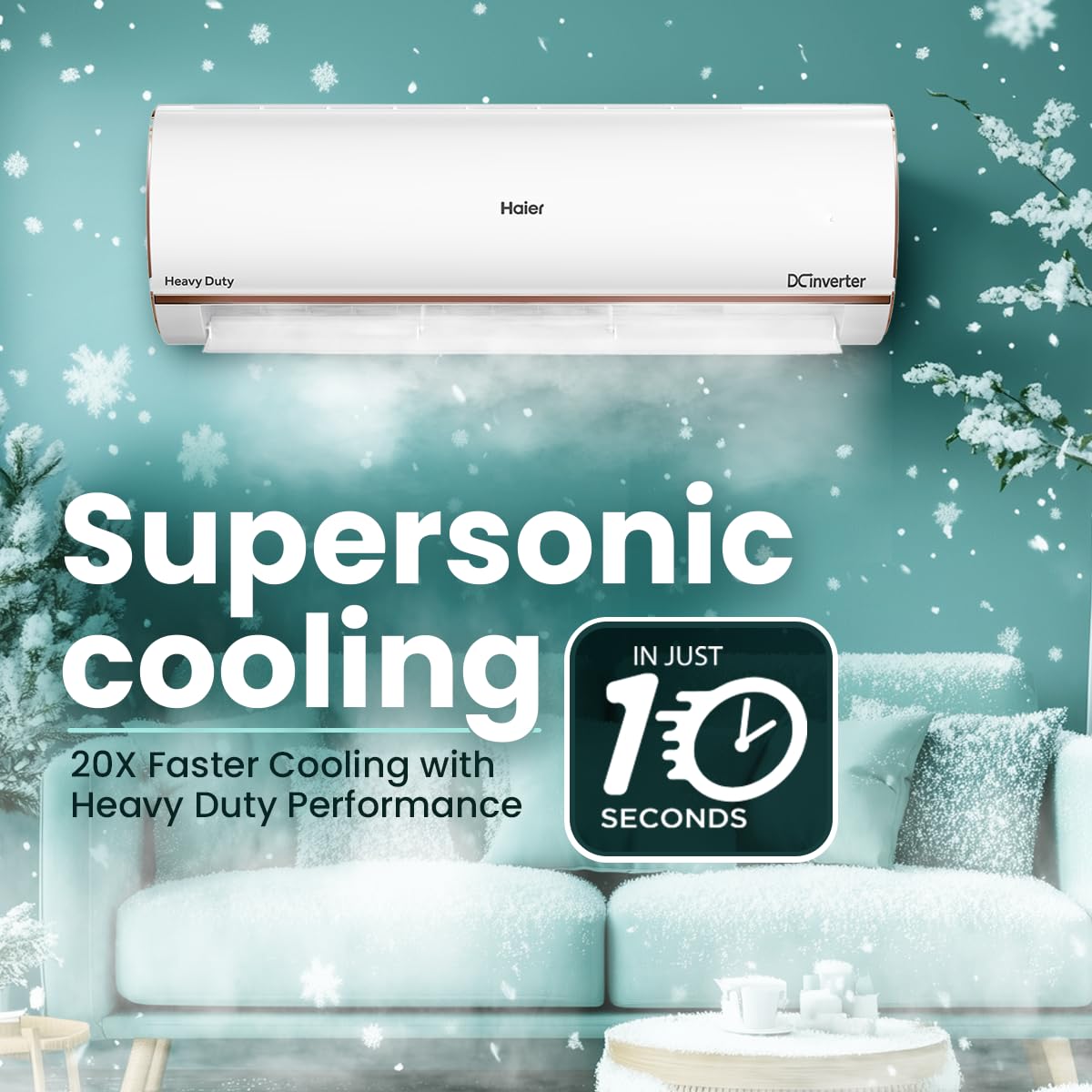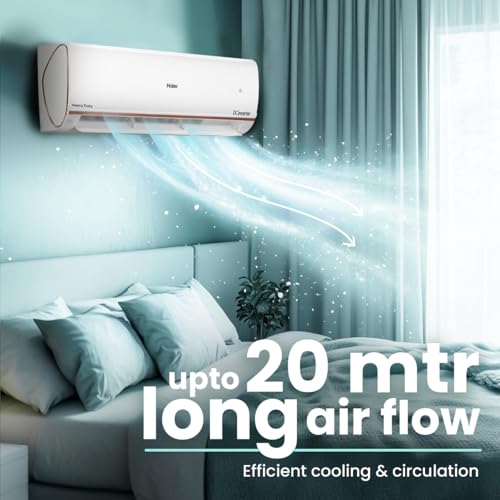 Haier 1 Ton 4 Star Smart Split AC (3470W, Copper, Wi-Fi, 4-Way Swing, 7 in 1 Convertible, Anti Bacterial Filter, Cools at 60°C Temp, 20 Mtr. Air Throw - HSU13K-PYFR4BN-INV, 2025 Model - White)