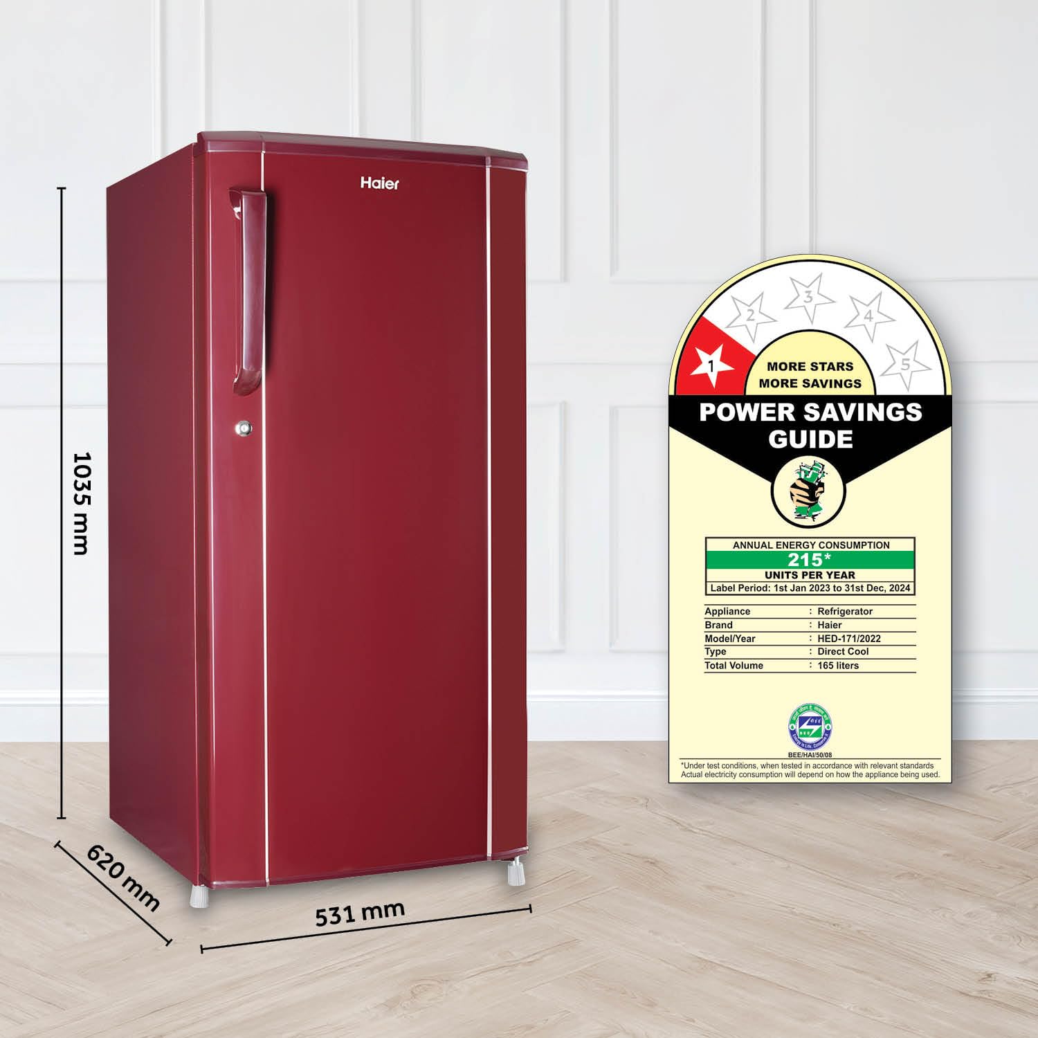 Haier 165 L, 1 Star, Direct-Cool Single Door Refrigerator (HED-171RS-P, Red Mono, 2024 Model)