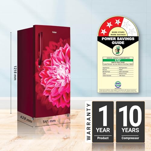 Haier 190L 3-Star Direct Cool Single Door Refrigerator (HED-203RD-P, Red Dahelia, 2024 Model)