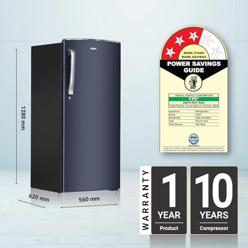 Haier 205 L, 3 Star, Direct-Cool Single Door Refrigerator (HED-213MB-N, Graphite Black, 2024 Model)
