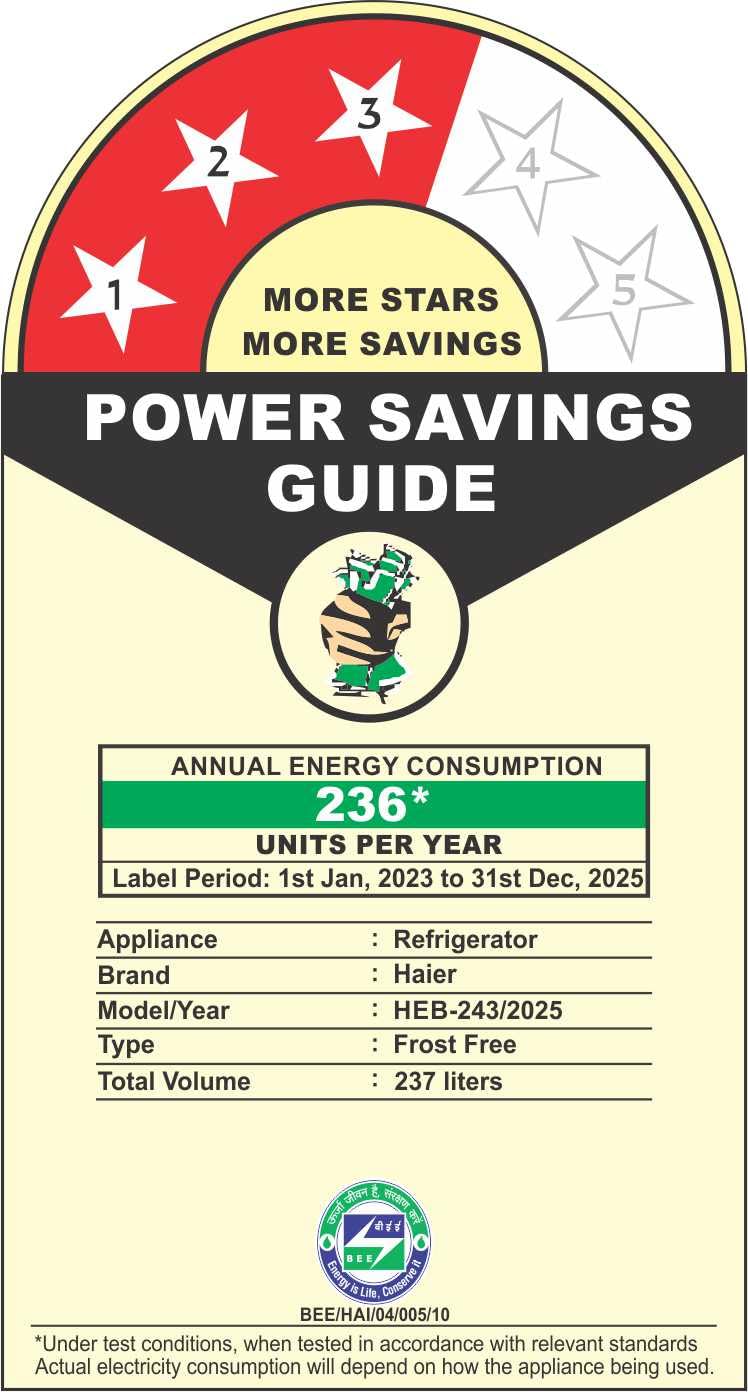 Haier 237L 3 Star Frost Free Bottom Mount Double Door Refrigerator|8 In 1 Convertible Modes|Jhukna Mat-Bottom Freezer|Twin Inverter|200% Faster Ice Making in 49 Minutes (HEB-243GB-P, GE Black)