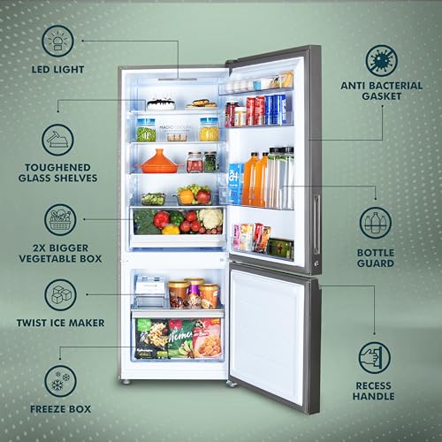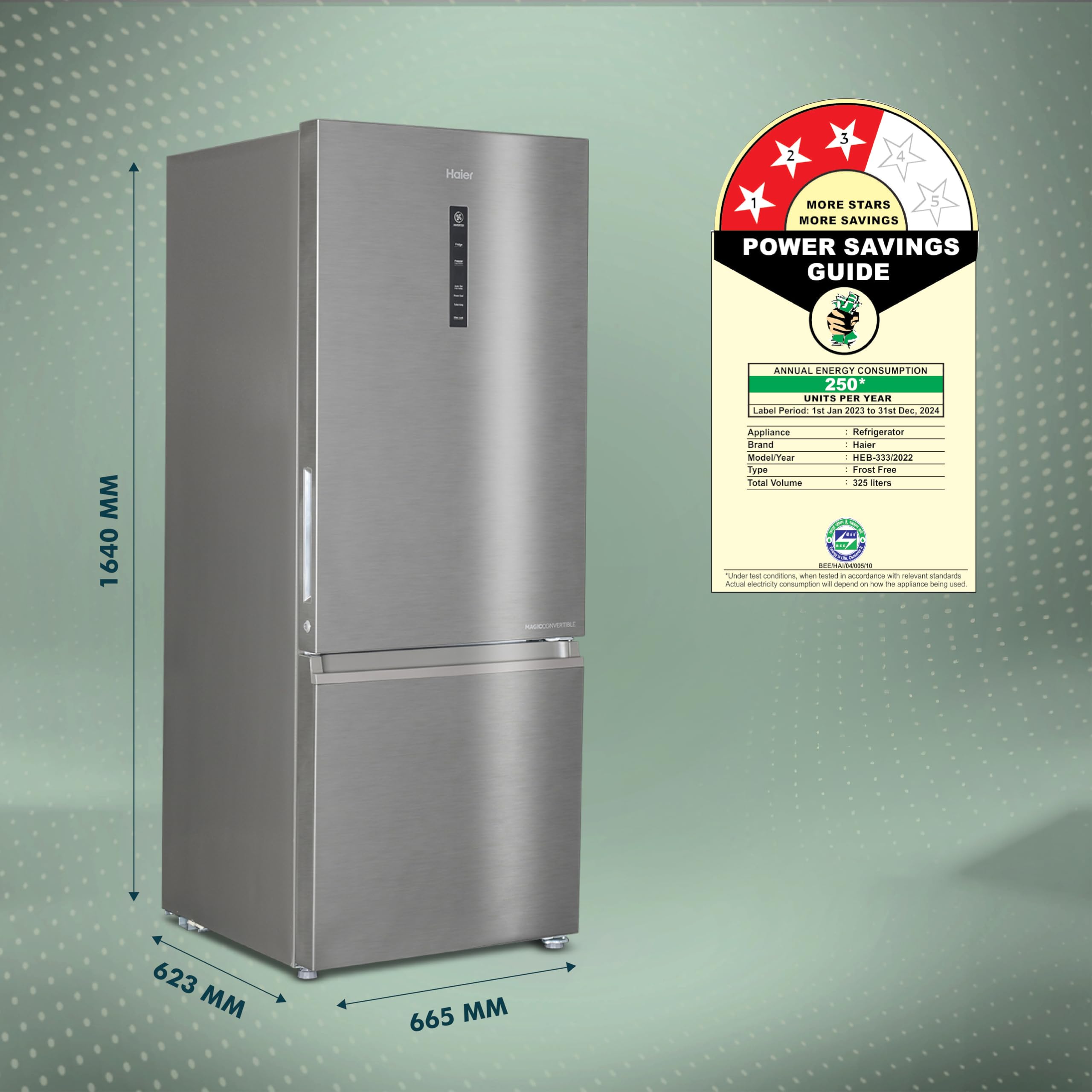 Haier 325 L, 3 Star, Convertible 14-in-1 Triple Inverter & Fan Motor Technology, with Display Frost Free Double Door Bottom Mount Refrigerator (HEB-333DS-P, Dazzle Steel, 2024 Model)