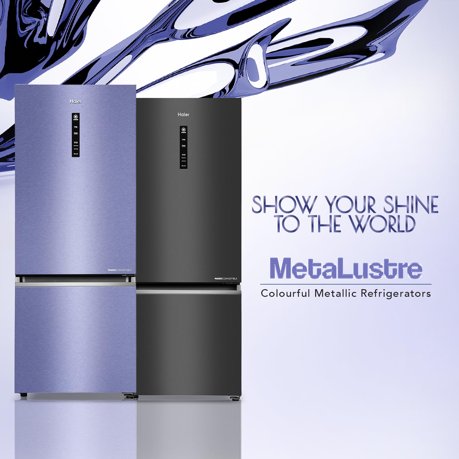 Haier 325 L 3 Star Frost Free Bottom Mount Double Door Refrigerator|Convertible 14-in-1|Jhukna Mat-Bottom Freezer|Digital Display Panel|Triple Inverter|Twist Ice Maker (HEB-333GB-P, Graphite Black)