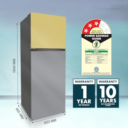 Haier 328 L, 3 Star, Convertible 10-in-1, Triple Inverter & Fan Motor Technology, Frost Free Double Door Refrigerator (HRF-3783YGG-P, Yellow Grey Glass, 2024 Model)