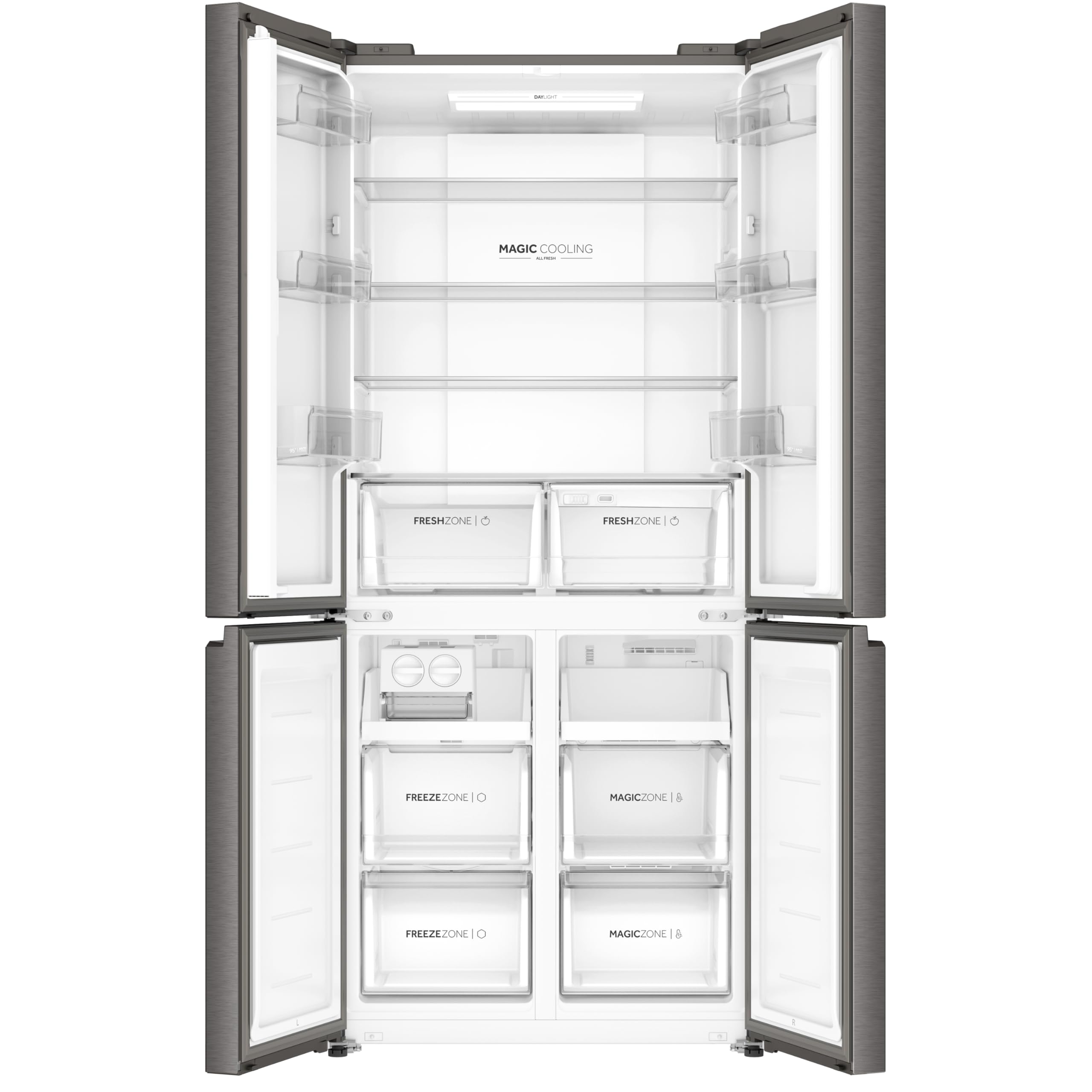 Haier 520L 3 Star Lumiere French Door 4-Door Side by Side Frost Free Refrigerator | Convertible Magic Zone | Inverter | Digital Display Panel | Deo Fresh Technology (HRB-600IS, Inox Steel)