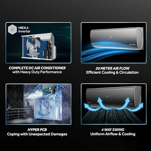 Haier Limited Edition 1.6 Ton 5 Star HEXA Inverter Smart Split AC (5460 Watts, Copper, Heavy Duty, Wi-Fi, 4-Way Swing, Frost Clean, HD Filter, Cools at 60°C-HSU19K-PZFB5BN-INV,Black)