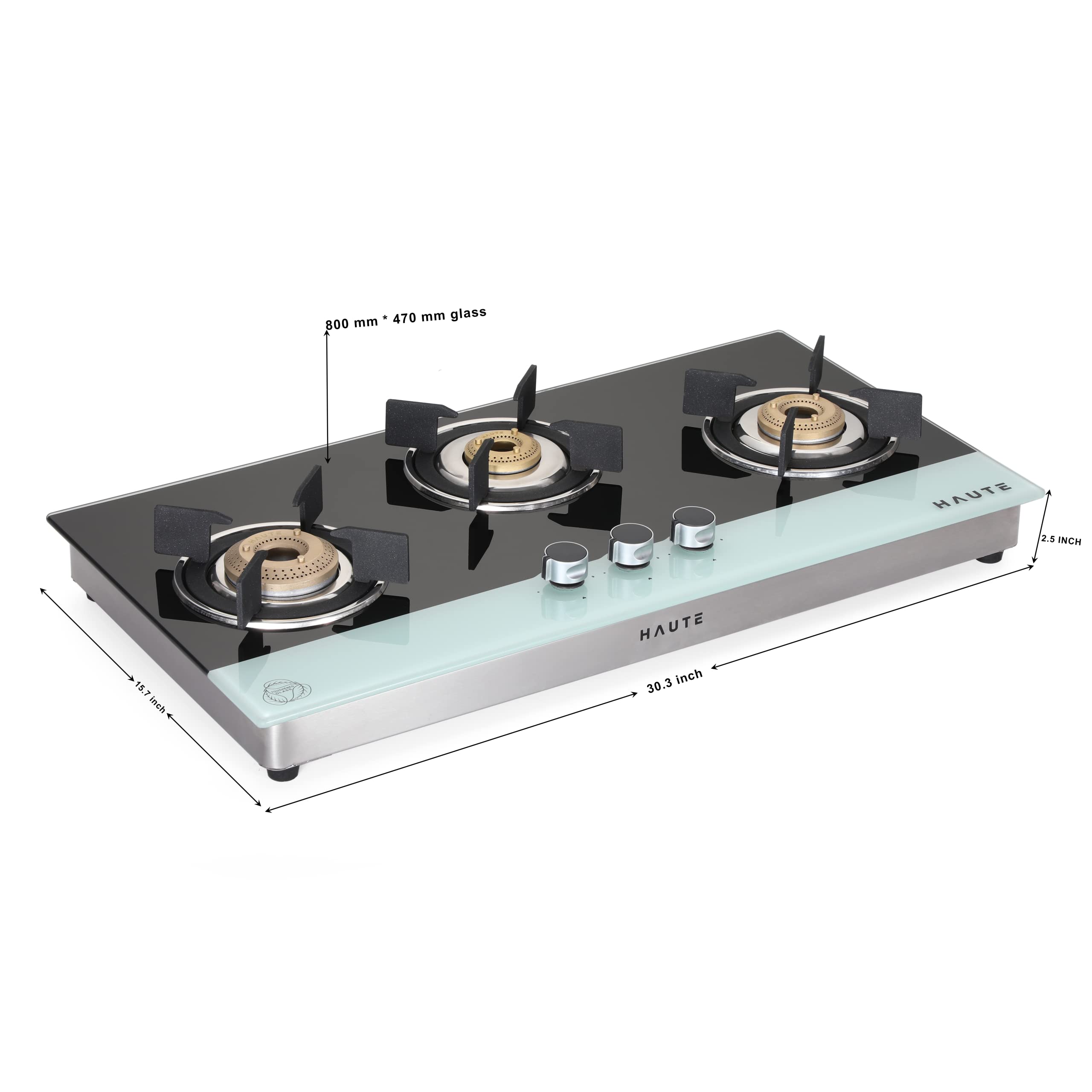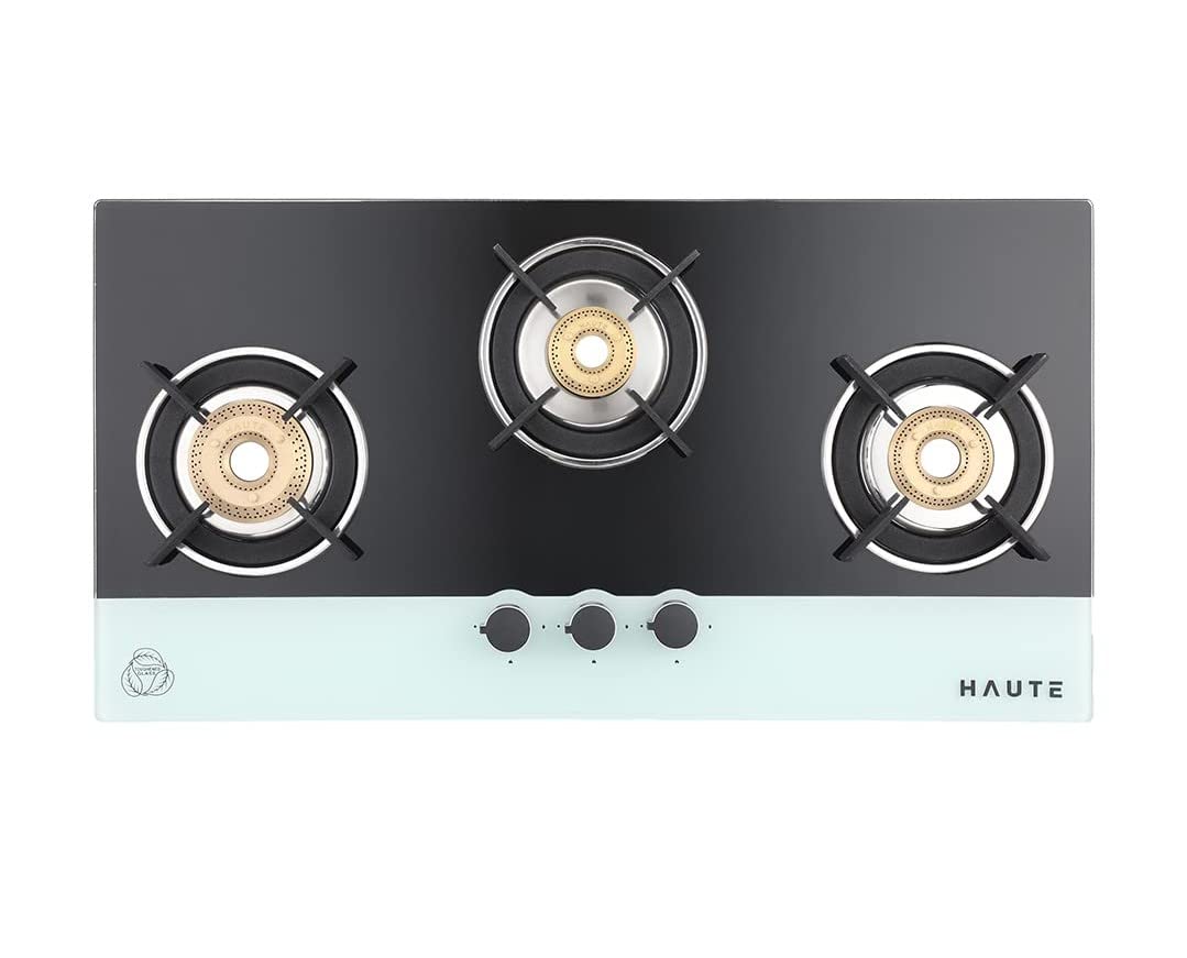 Haute Kitchen Evoque Series Black&White 3 Burner Cooktop|Manual Ignition Gas Stove|Glass Top -1 Jumbo,1 Medium,1 Small -Freestanding Toughened Glass Premium Design -(Tempered Glass,2 Year Warranty)