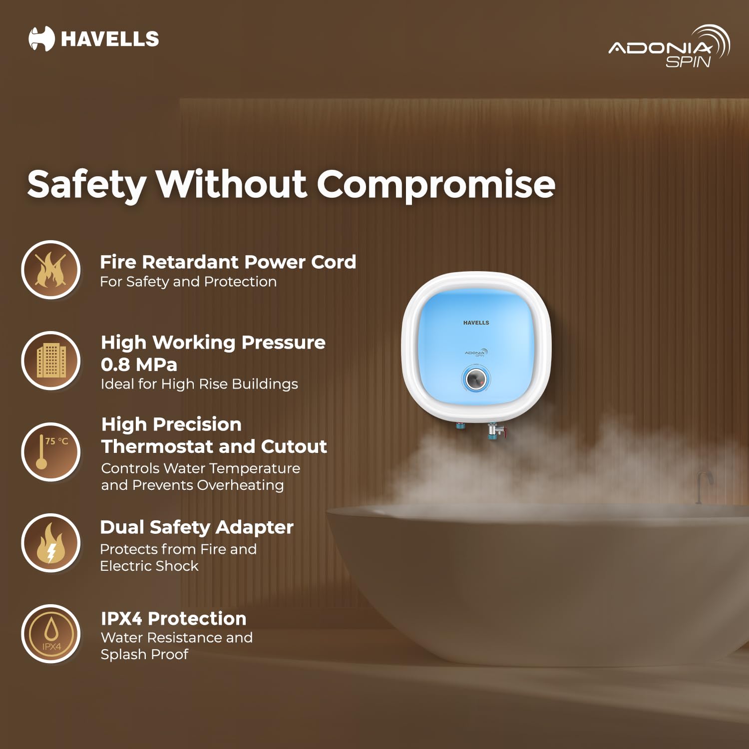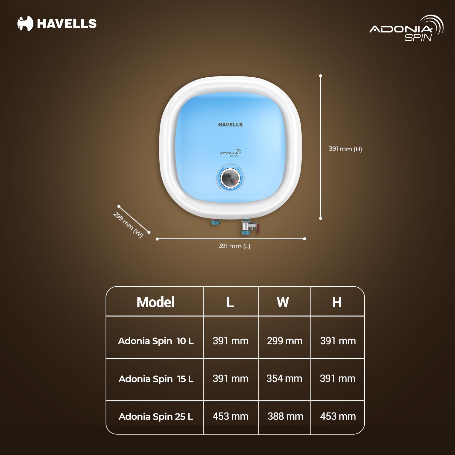 Havells All New Adonia Spin 15L 5 Star Storage Water Heater(Geyser)|Faster Heating|Safe to use|Saves electricity|Feroglas Coated Anti Rust Tank| Temp. setting knob|7 Yr. Tank Warranty| Made In India