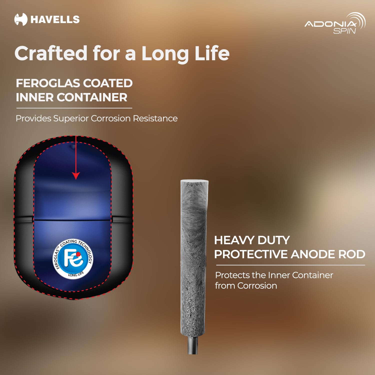 Havells All New Adonia Spin 25L 5 Star Storage Water Heater(Geyser)|Faster Heating|Safe to use|Saves electricity|Feroglas Coated Anti Rust Tank| Temp. setting knob|7 Yr. Tank Warranty| Made In India