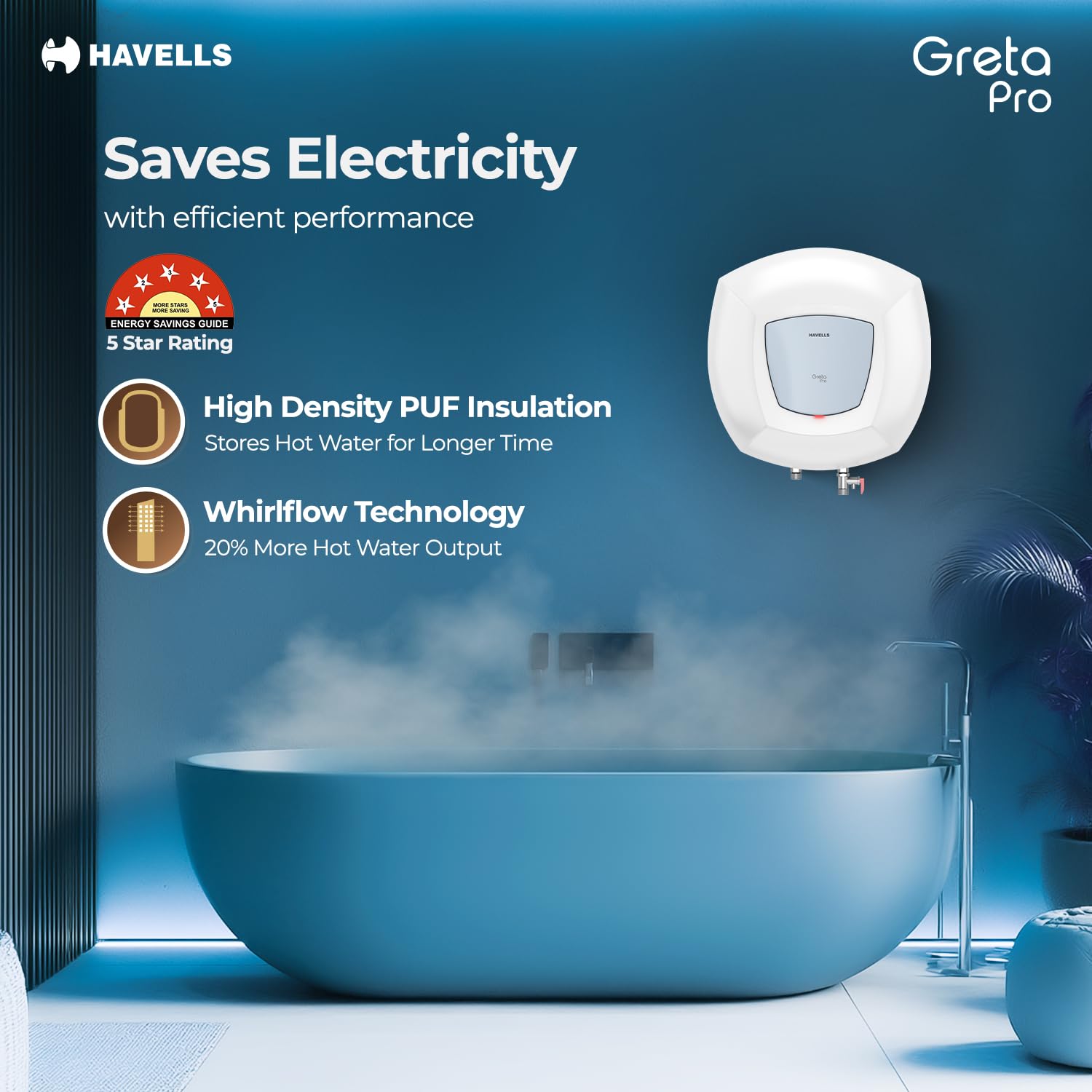 Havells All New Greta Pro 10L 5 Star Storage Water Heater (Geyser) | Faster Heating | Safe to use | Saves electricity |Engineered for Hard Water | Feroglas Coated Anti Rust Tank | Made in India