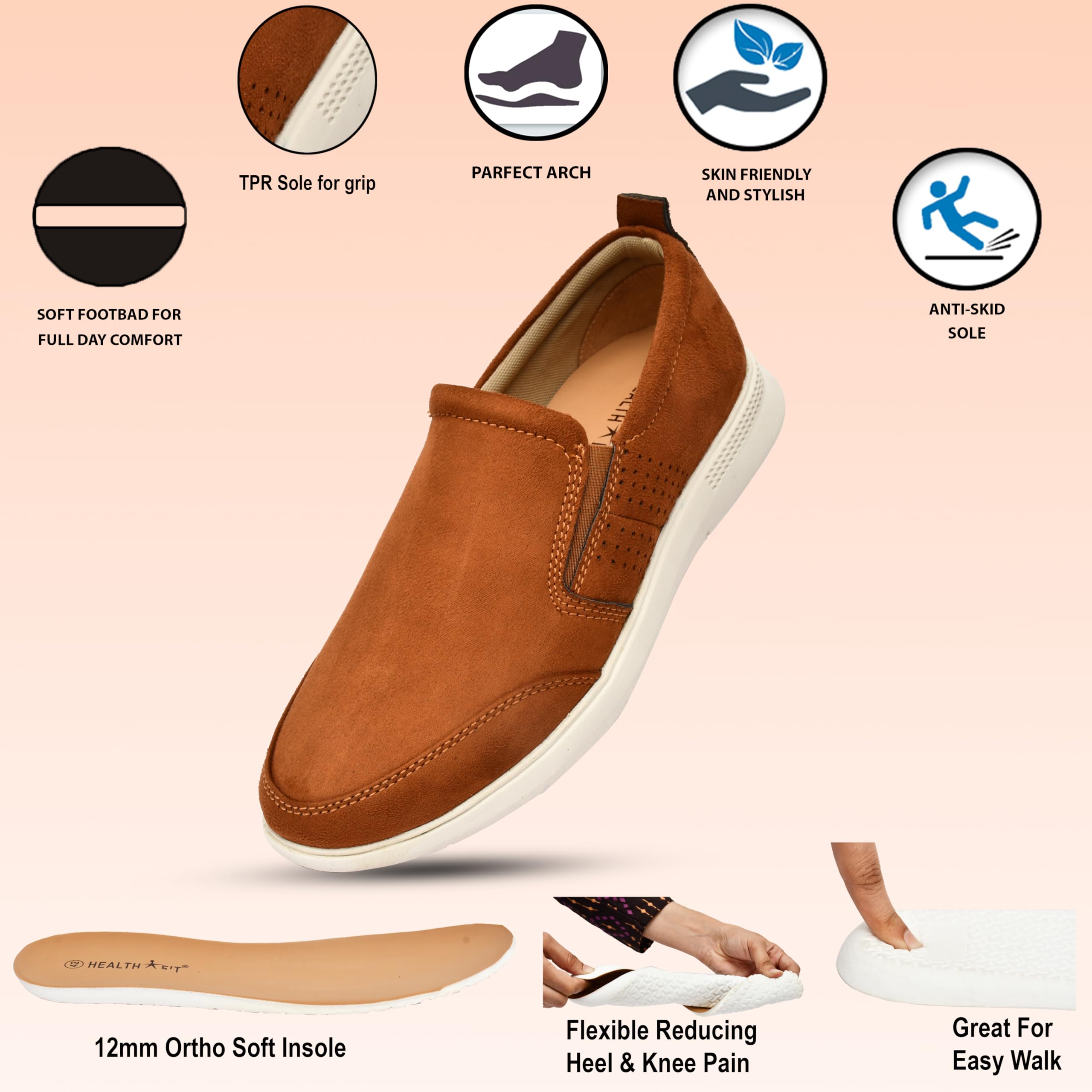 HEALTH FIT Super Extra Soft Casual/Sports/Slip-on Sneakers/semi Formal Soft Cushioning Insole Running Walking Jogging Athletics Comfortable and Stylish Mens/gens Lightweight shoes-142 TAN UK-9