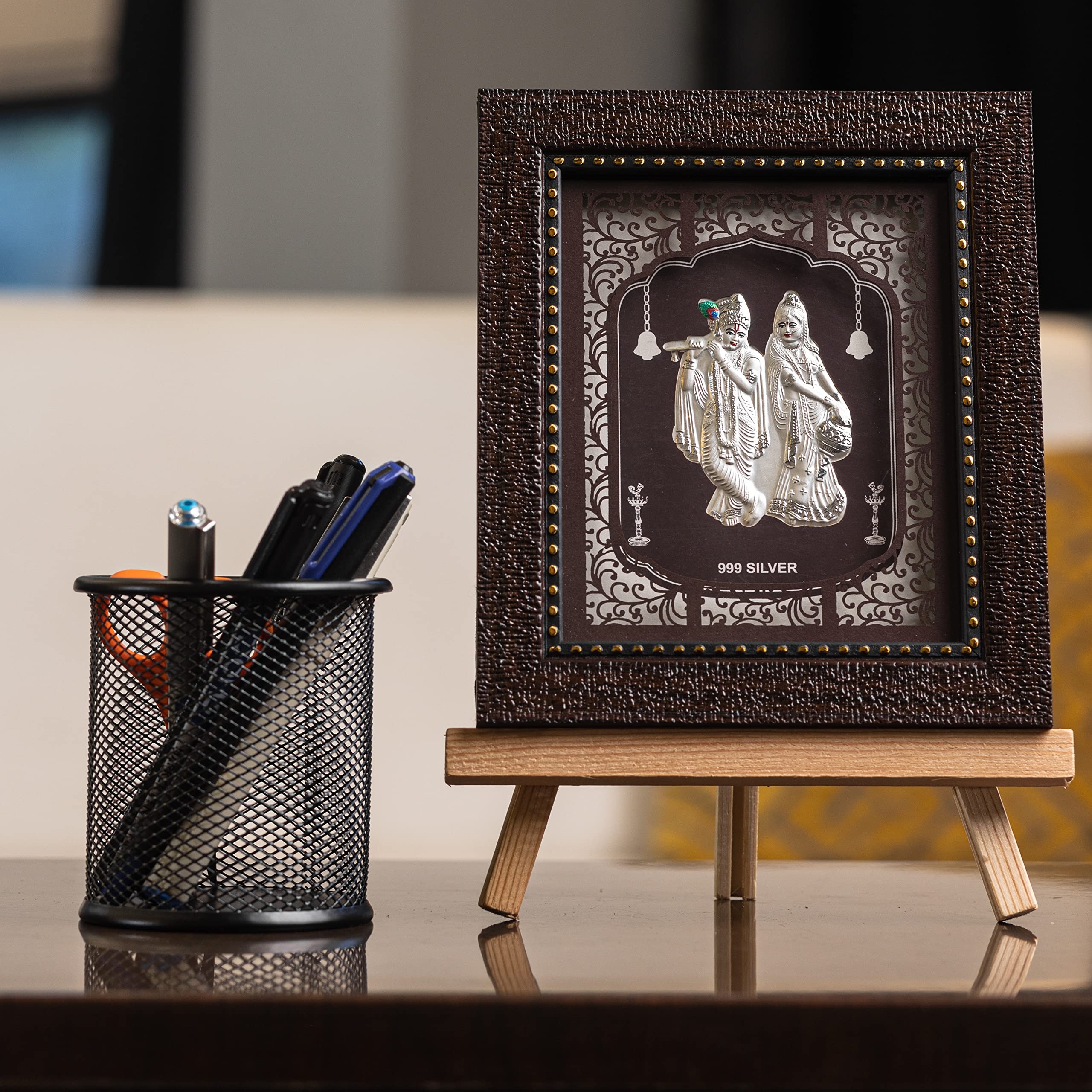 Hem Jewels Pure Silver Radhe Krishna Frame for Gift & Home Decor (7.5x6.5 Inch) (Pack of 1)