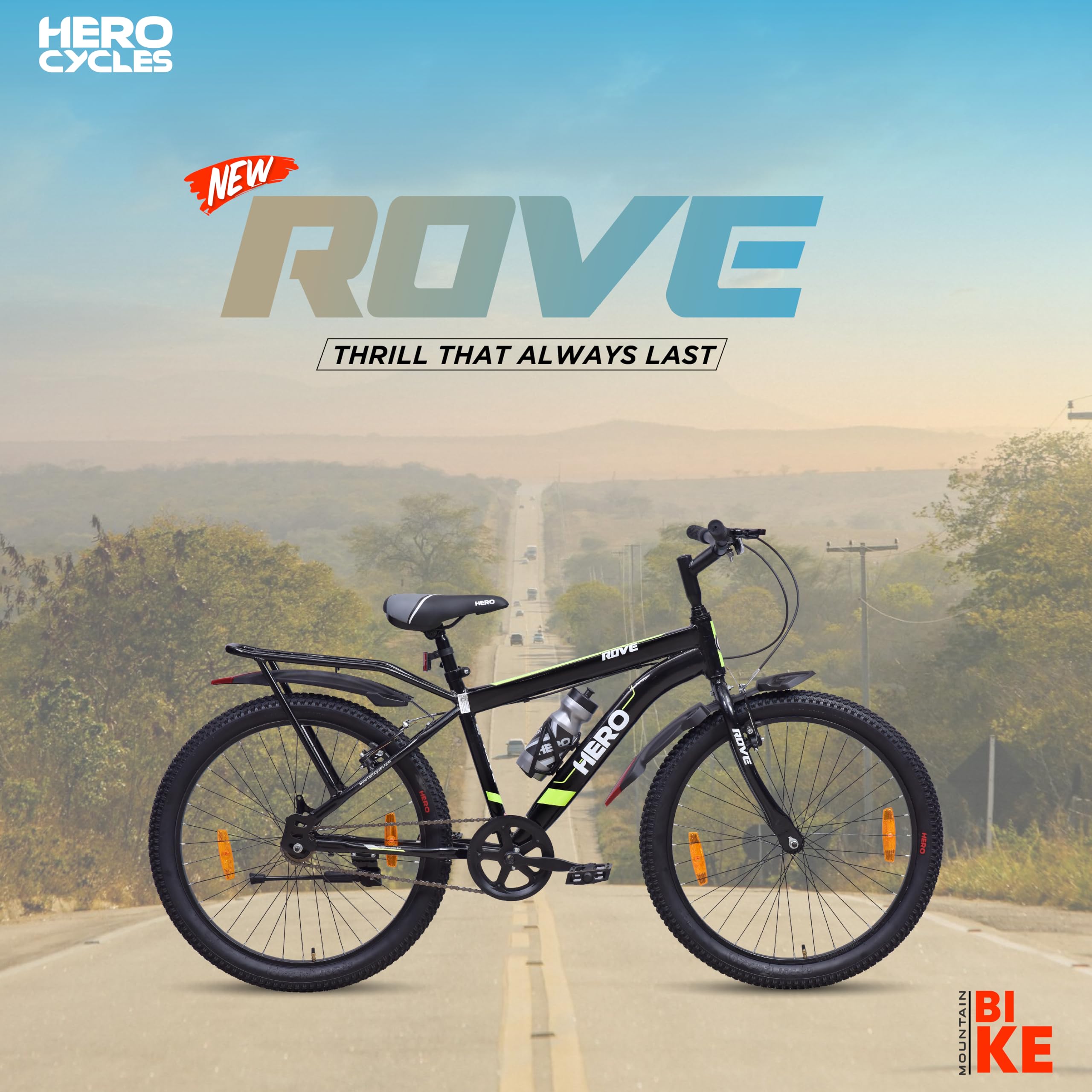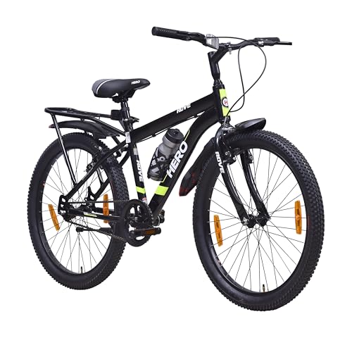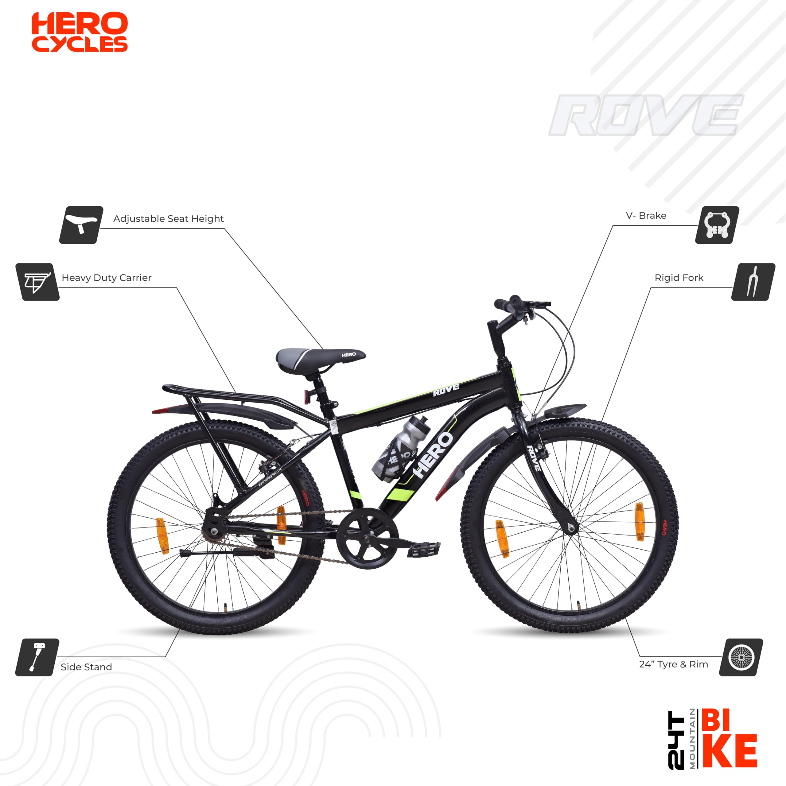 Hero Rove 24T Bicycle for Mens | Inbuilt Carrier | Rigid Suspension | V Brake | Black-Lime Green | Frame:15.5 Inches | 95% Assembled Cycle(Ready to Ride in 5 Min)