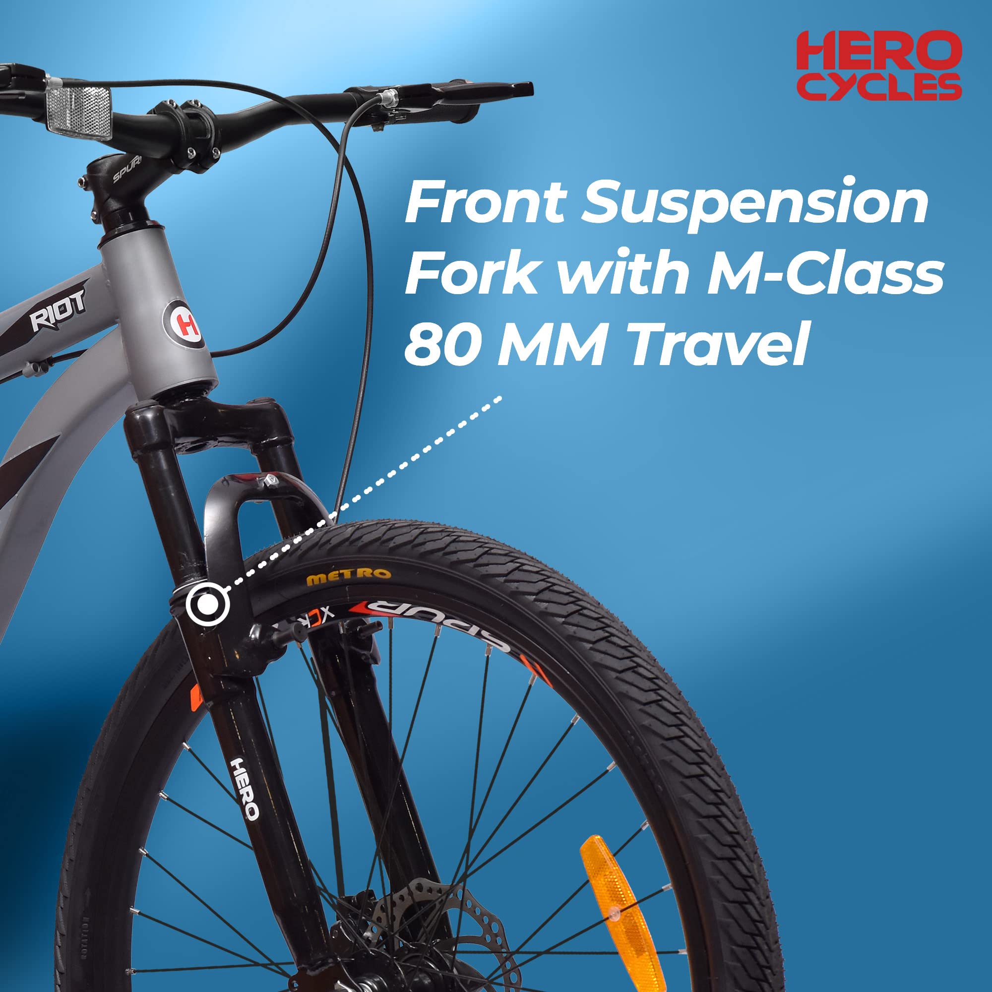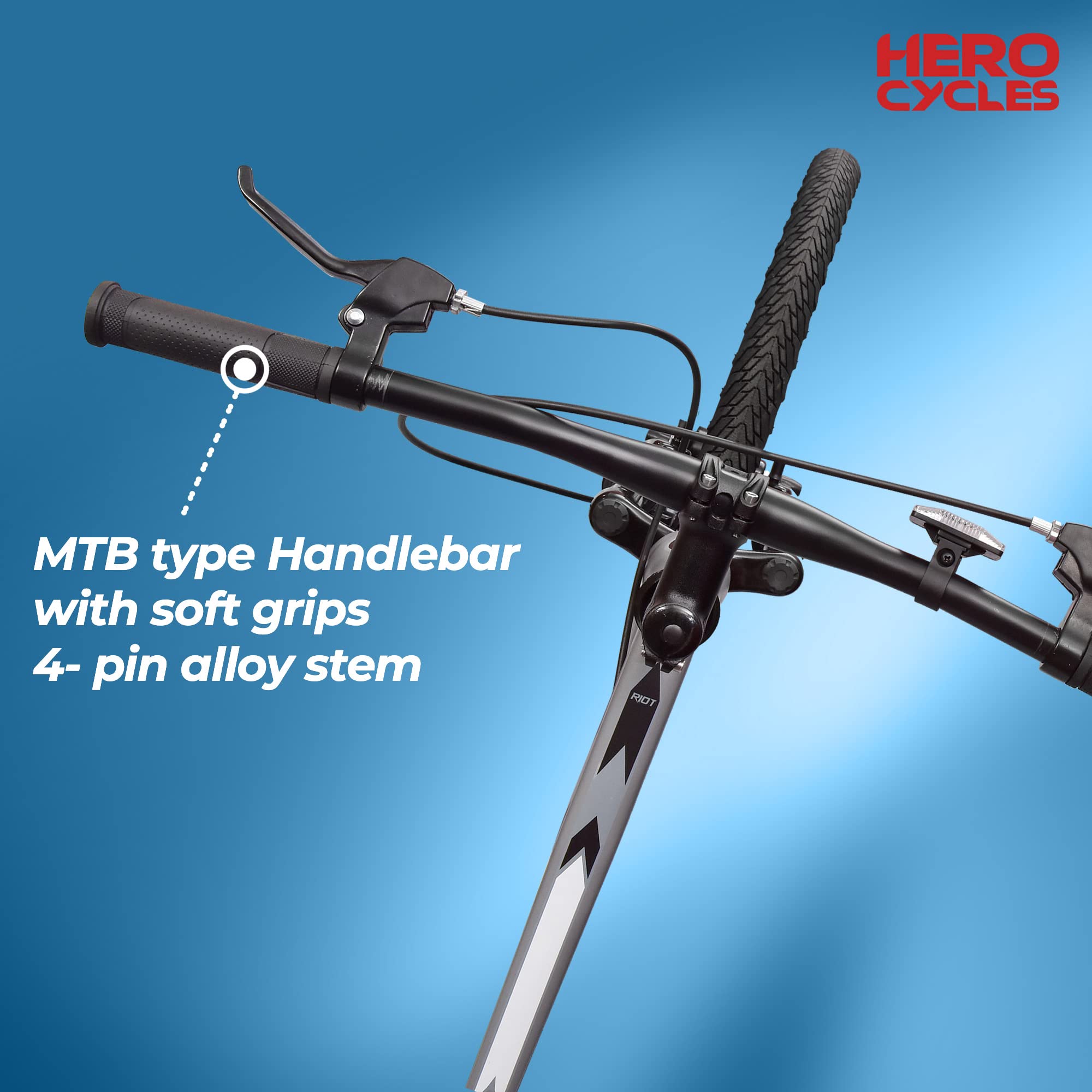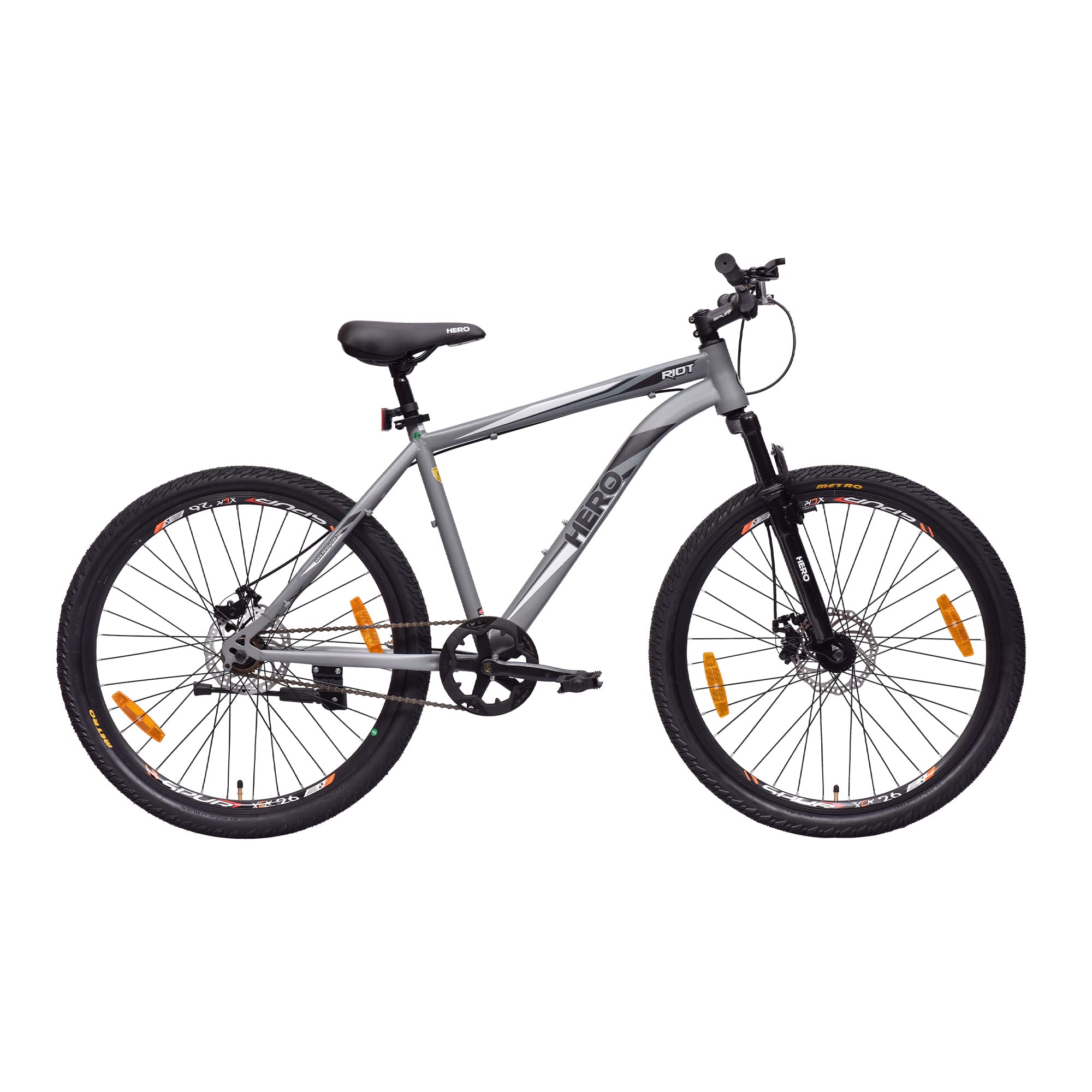 Hero Sprint Riot 26T Single Speed Mountain Cycle | Front-Suspension | Dual Disk | Matt Charcoal Grey | Ideal Age 12+ Years for Men and Women | Unisex | 95% Assembled Cycle(Ready to Ride in 5 Min)