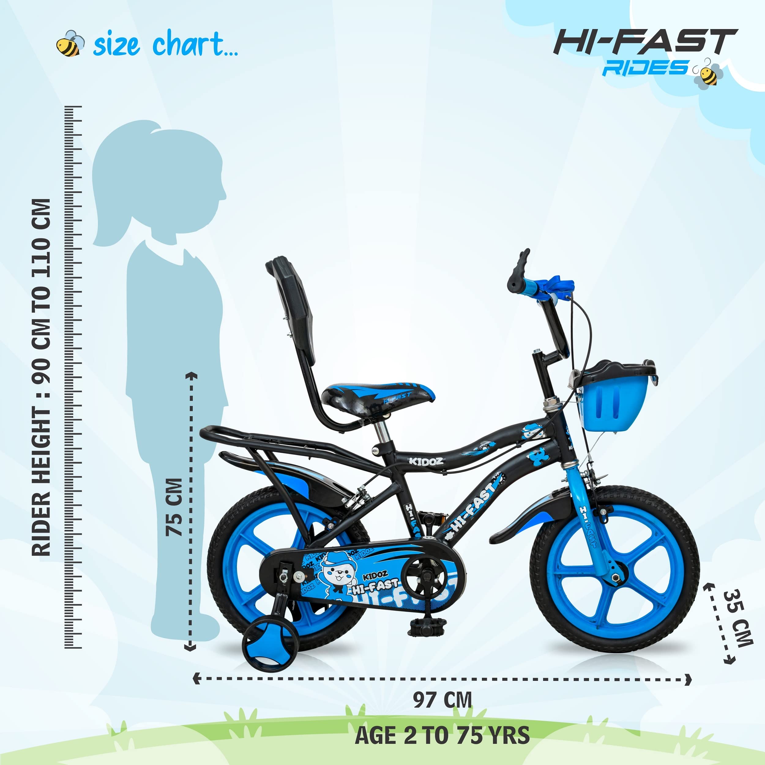 HI-FAST Kidoz Fun and Easy-Ride 14 Inch Cycles for Kids Ages 2-5 Years with Training Wheels and 95% Assembled, Rigid, Blue