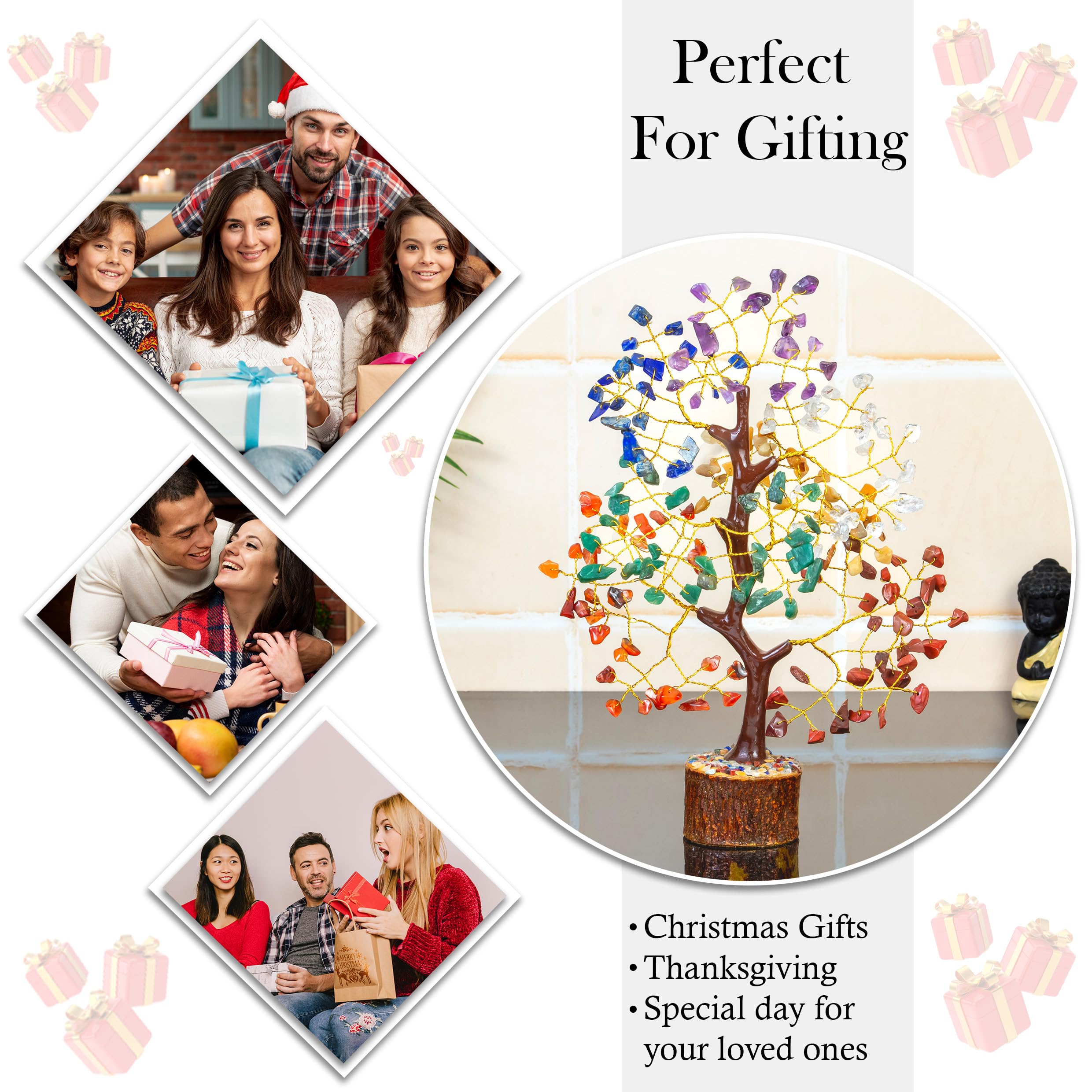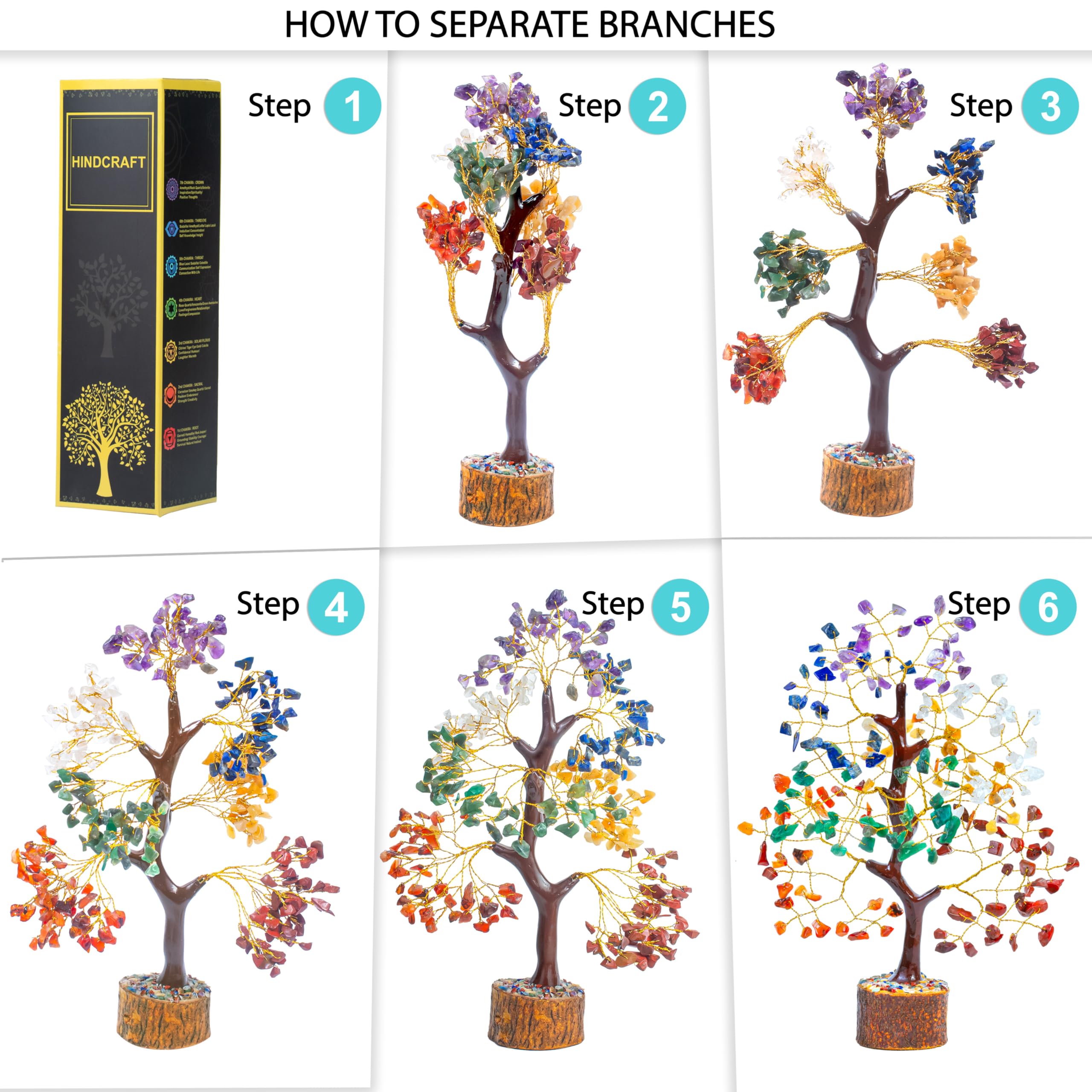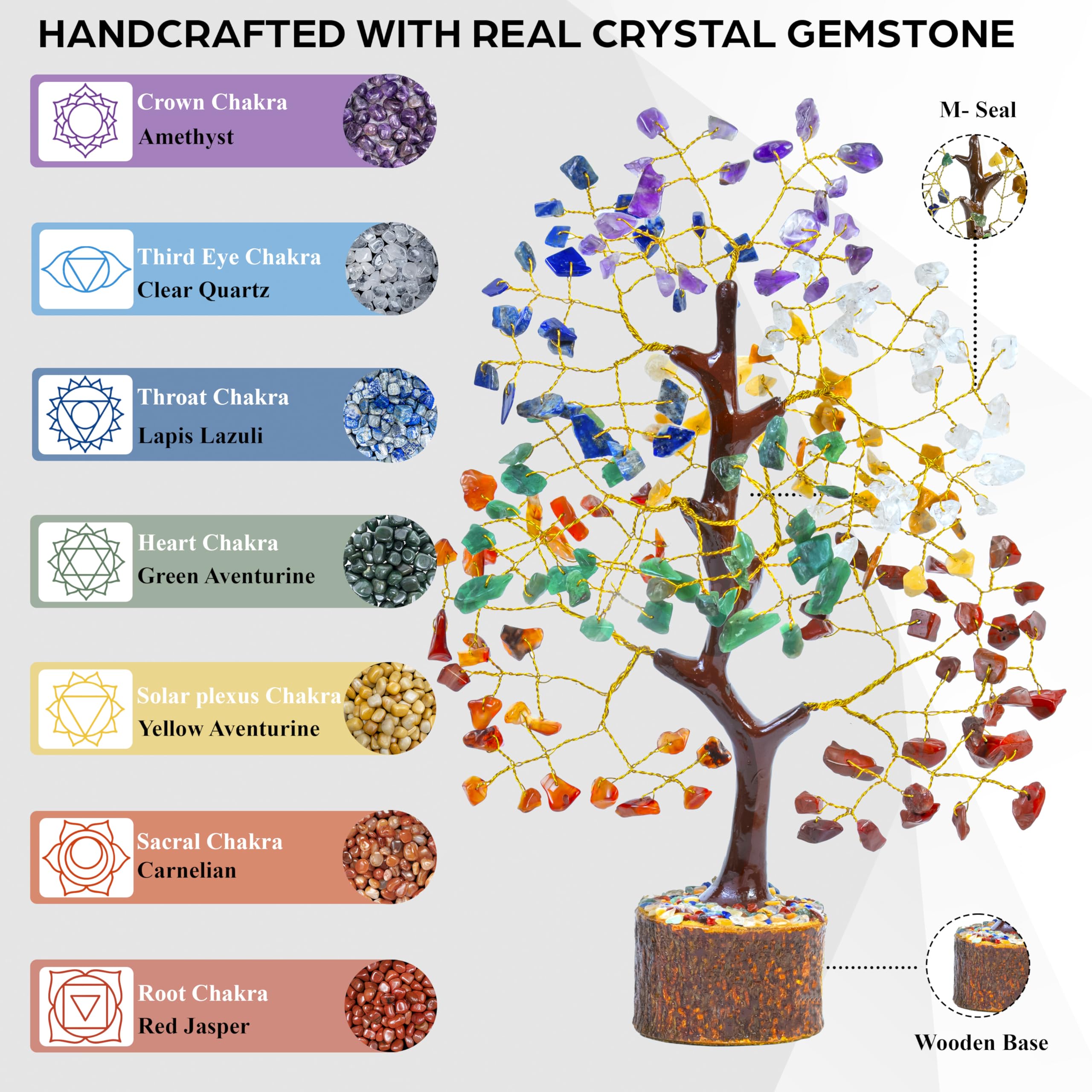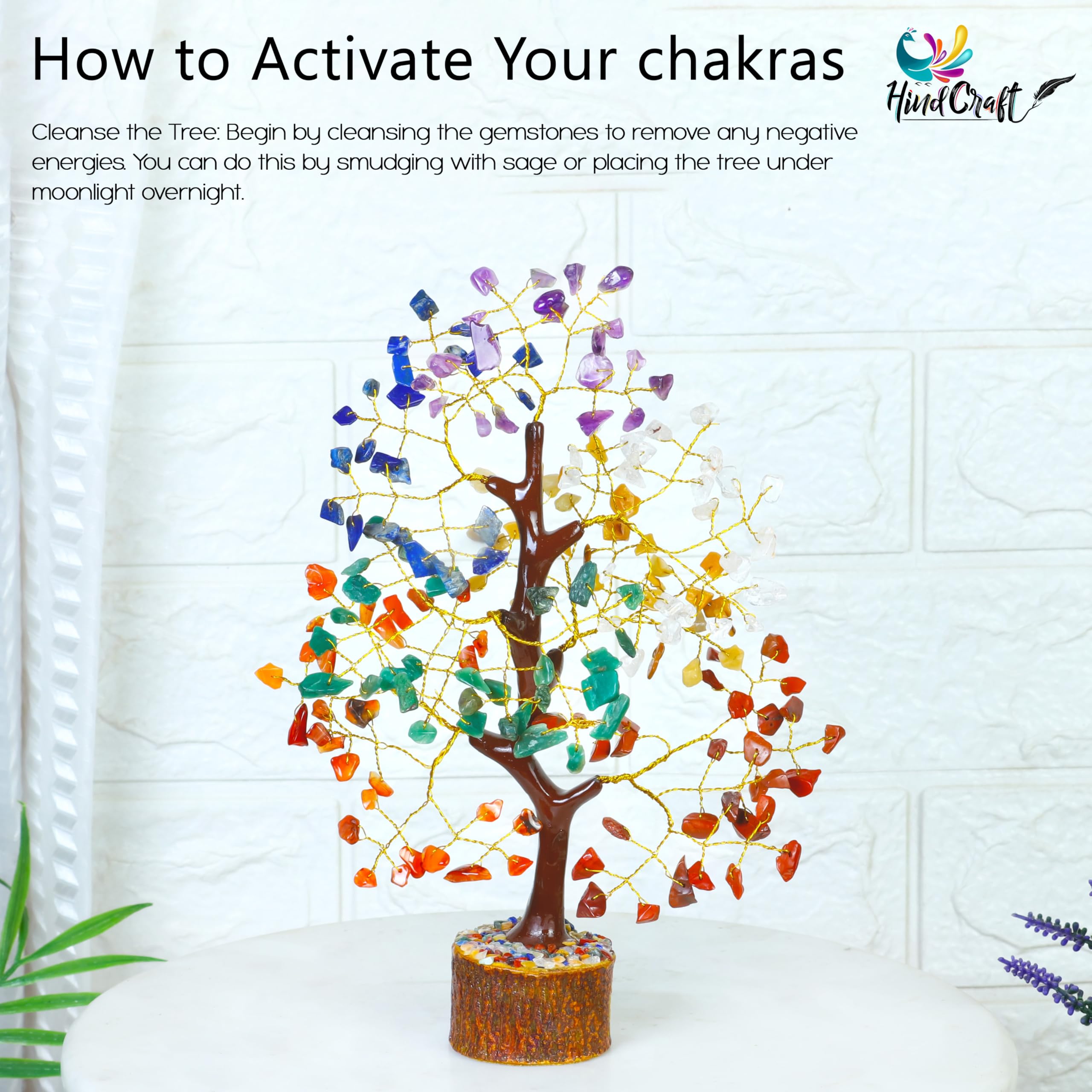 HindCraft Chakra Tree for Positive Energy - Crystal & Healing Stones Feng Shui Seven Chakra Tree of Life Decor - Perfect Rakhi Gift for Brothers & Sisters - 7 Chakra Tree, 200 Beads, 8-10"