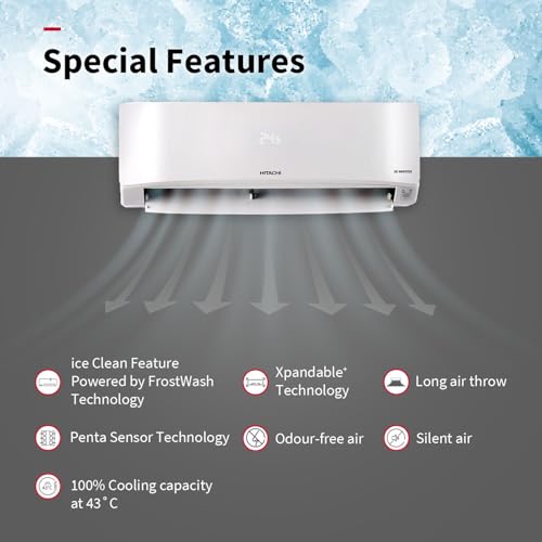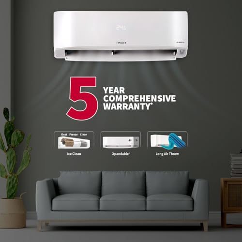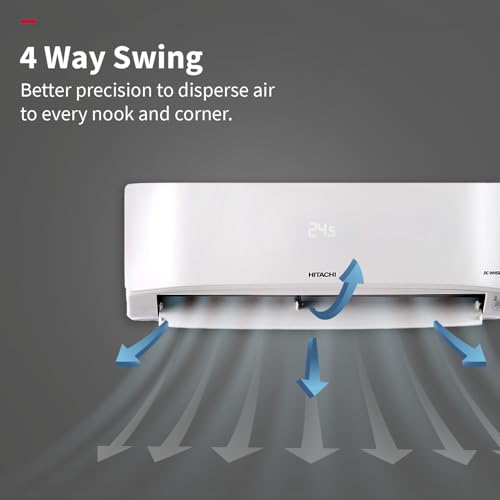 Hitachi 1 Ton Class 5 Star, 4-Way Swing, ice Clean, Xpandable+, Inverter Split AC (100% Copper, Dust Filter - 5400STXL RAS.G512PCBIBT, White)